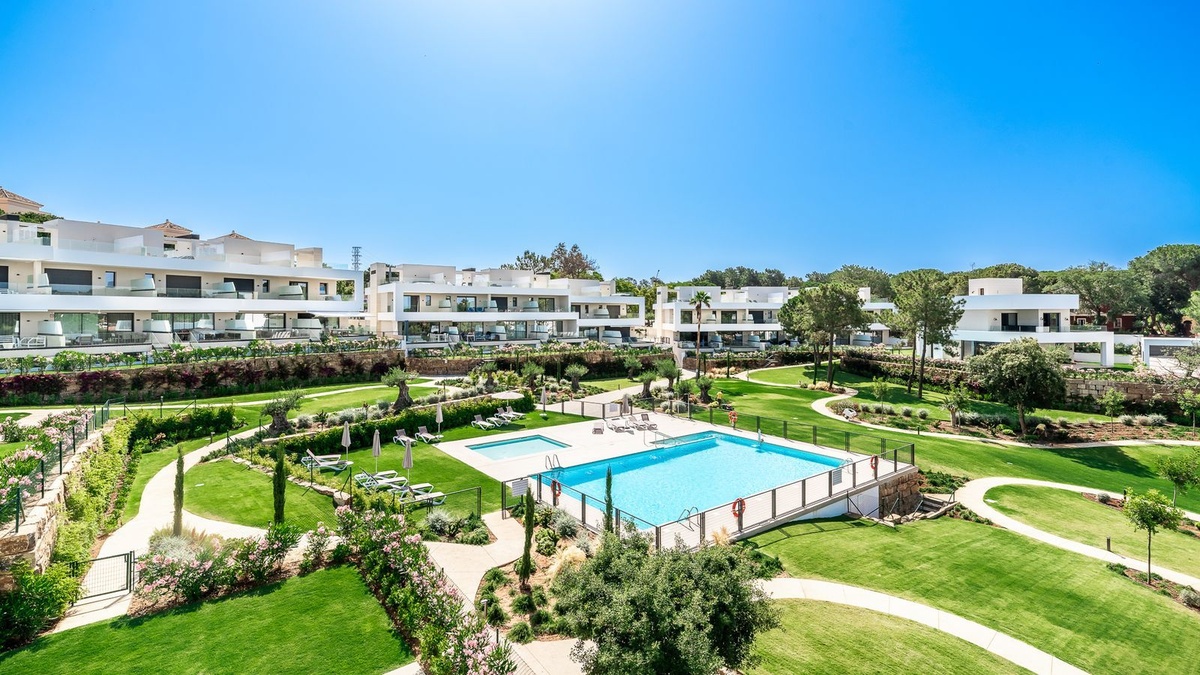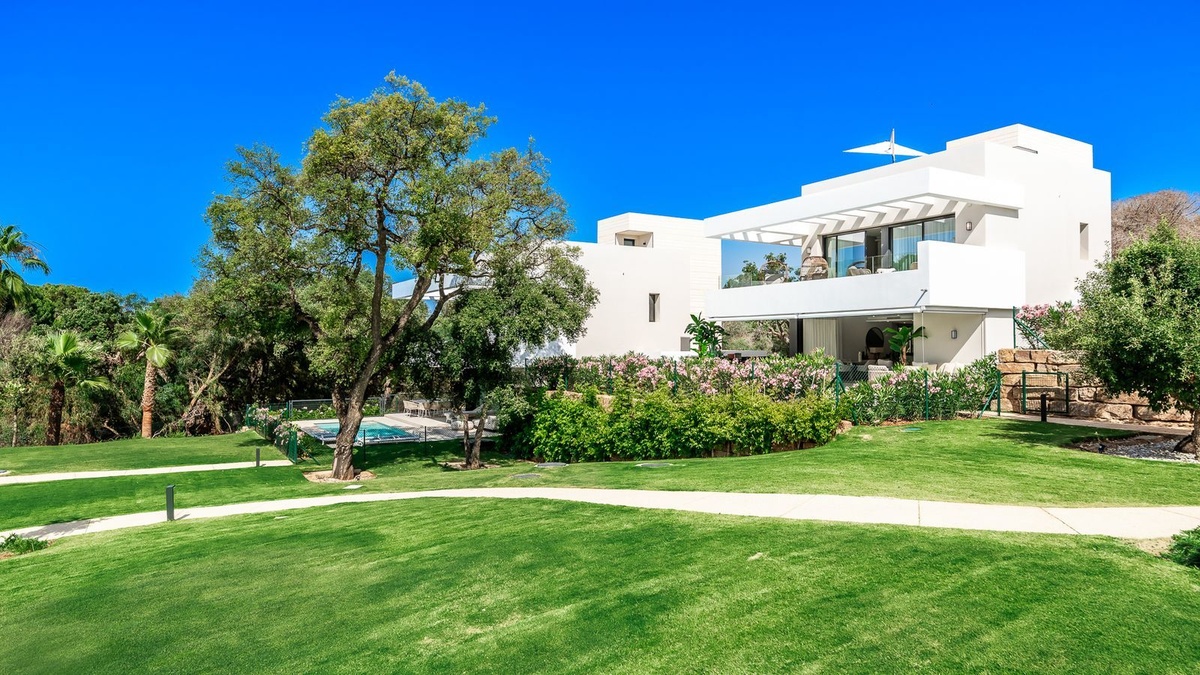De ontwikkeling bestaat uit slechts 7 vrijstaande villa's en 18 herenhuizen, gelegen in bijna 15.000 m² aan prachtig aangelegde tuinen met twee zwembaden, rustige wandelpaden en weelderige groene ruimtes. Het resultaat is een serene, resortachtige omgeving op slechts een korte loopafstand van de winkels, restaurants en zandstranden van Elviria.
