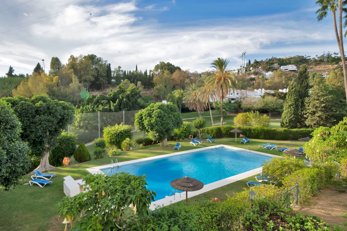 Magnificent first-floor apartment located in La Quinta, Benahavis. This two-bedroom, two-bathroom property is situated on the first line of the golf course in Balcones de La Quinta, a gated community with two swimming pools. Due to its generous size and layout, a third bedroom could easily be added. It features air conditioning, electric blinds, a fireplace, and a large terrace with golf course views.