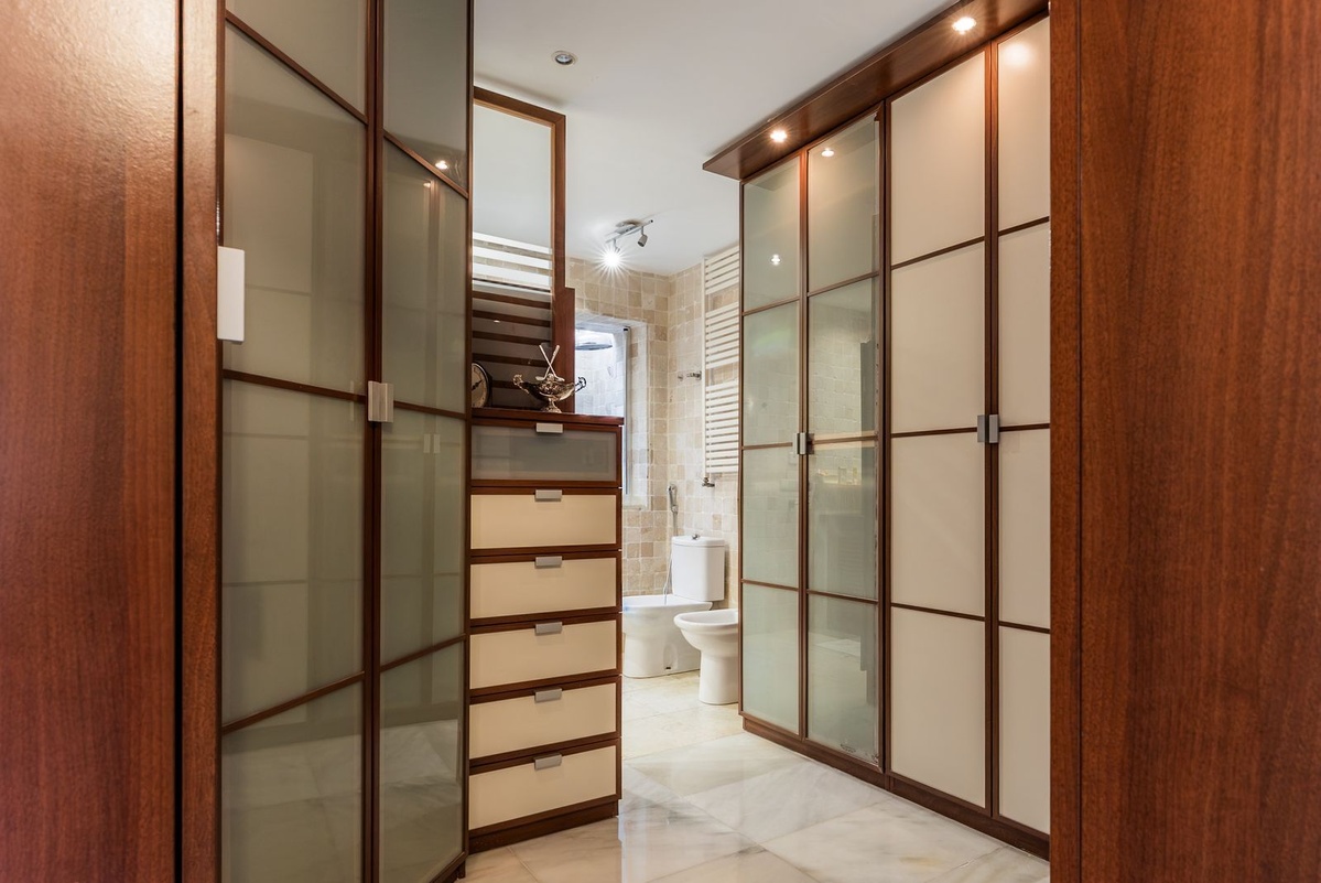Connected to the main residence by both elevator and stairs, the second house spans two levels: