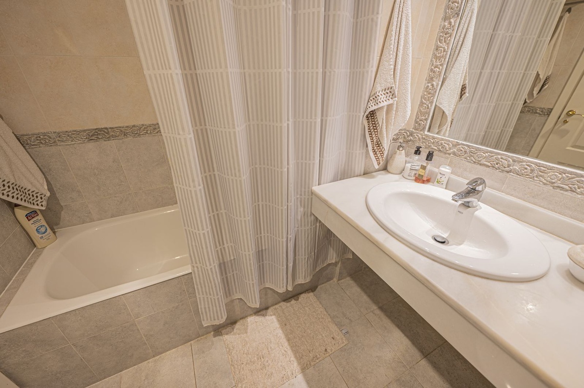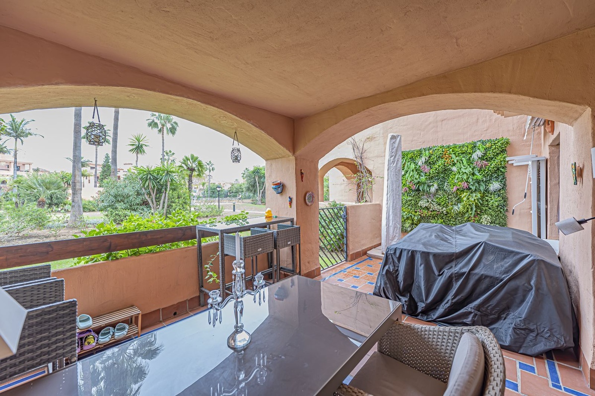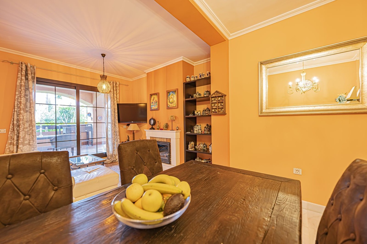 This ground-floor apartment comprises two bedrooms, two bathrooms, a living room with a fireplace, a separate kitchen with a utility room, and a fantastic terrace with direct access to the communal areas.