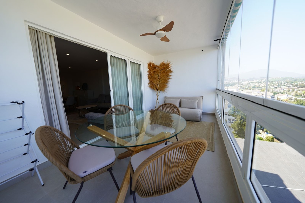 Bright, fully renovated, and modern, this 4-bedroom, 3-bathroom apartment is the perfect monthly rental in the heart of Nueva Andalucía. Enjoy sea, mountain, and golf views from the living room and private balcony, ideal for relaxing at any time of day.