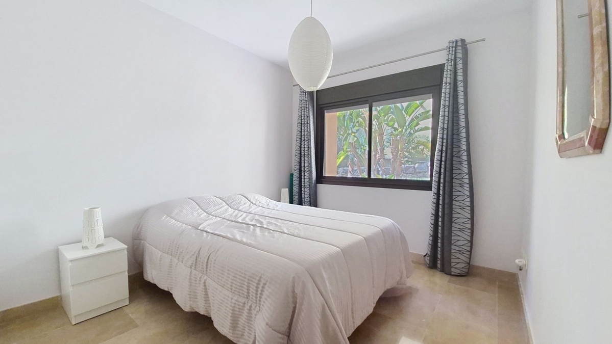 It consists of three bedrooms, the master one being en-suite. The other two share the same bathroom and enjoy views of the green areas of the development. It also features a large fully-equipped kitchen, a laundry room and a spacious living room with sea views.