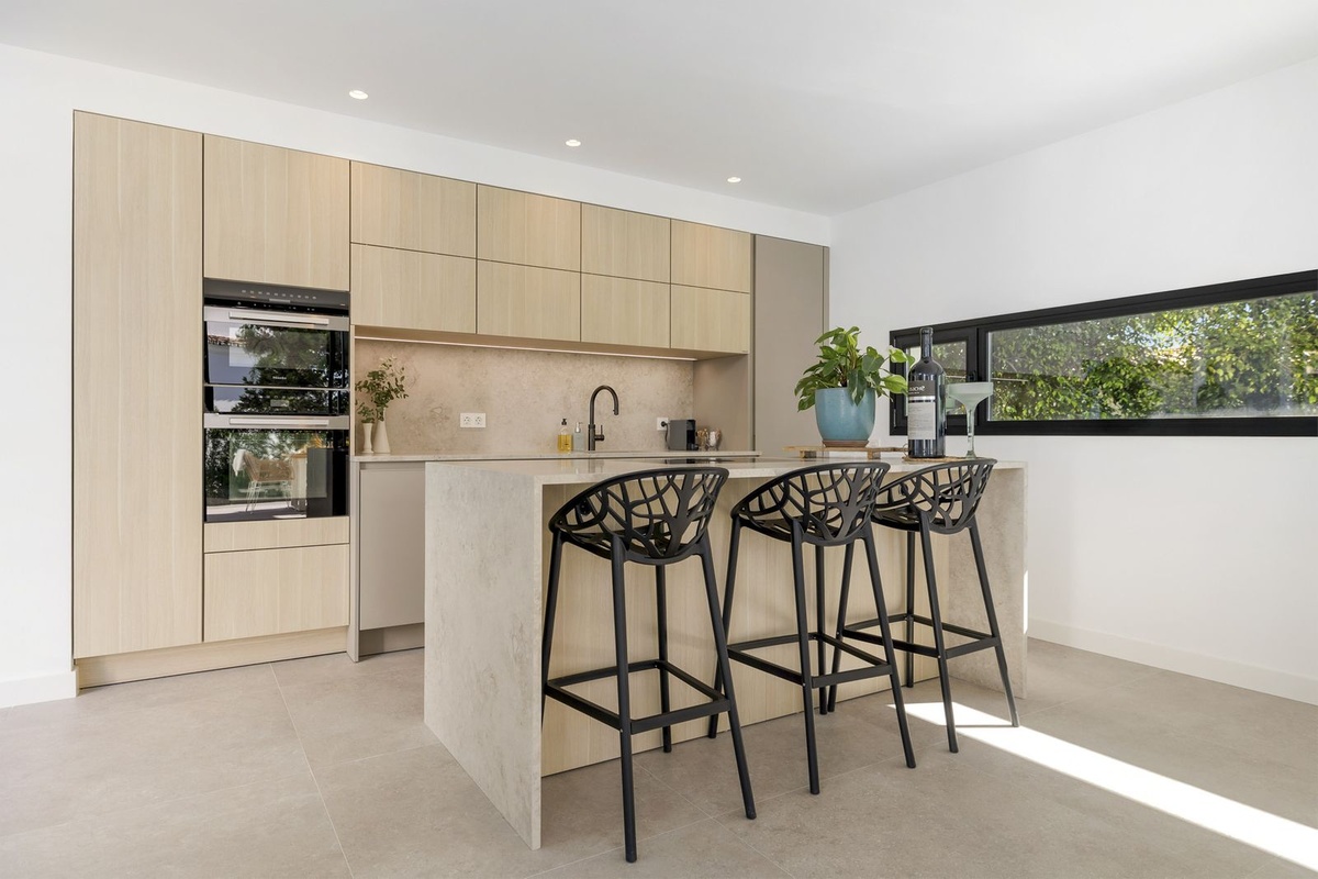 Steps from the sea, built for modern living, this stunning contemporary villa is located in the sought-after urbanisation of Marbesa, just a couple of minutes’ walk from the beach. Built to the highest standards, the design elegantly wraps around the private infinity pool, creating a seamless flow between indoor and outdoor living.