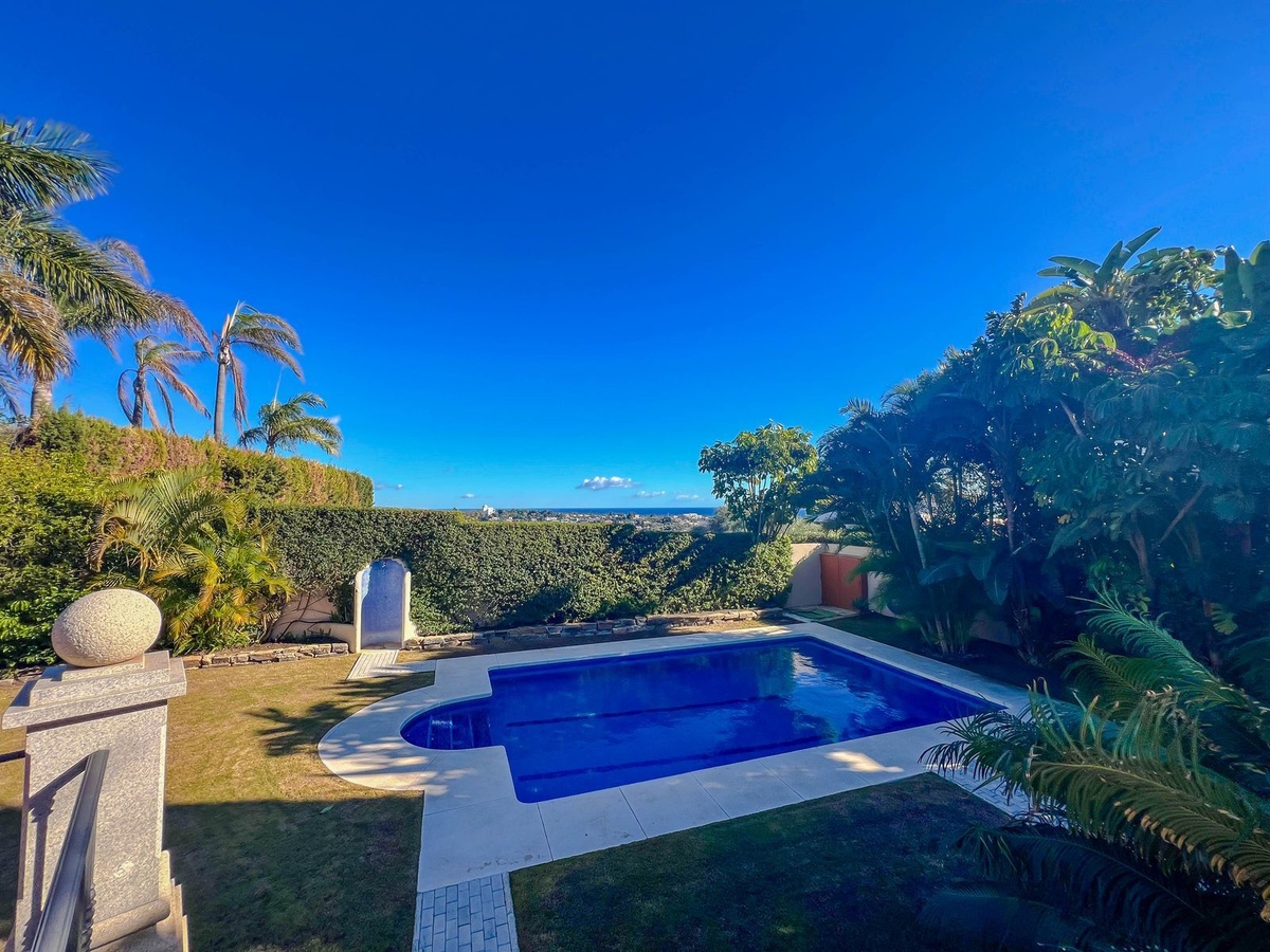 At the heart of the home is a spacious living room with a fireplace, opening onto a sunny terrace overlooking the garden and pool. The modern, fully equipped kitchen with dining area is designed for stylish everyday living. The five bedrooms —including a magnificent master suite with walk-in wardrobe and views— stand out for their size and brightness.