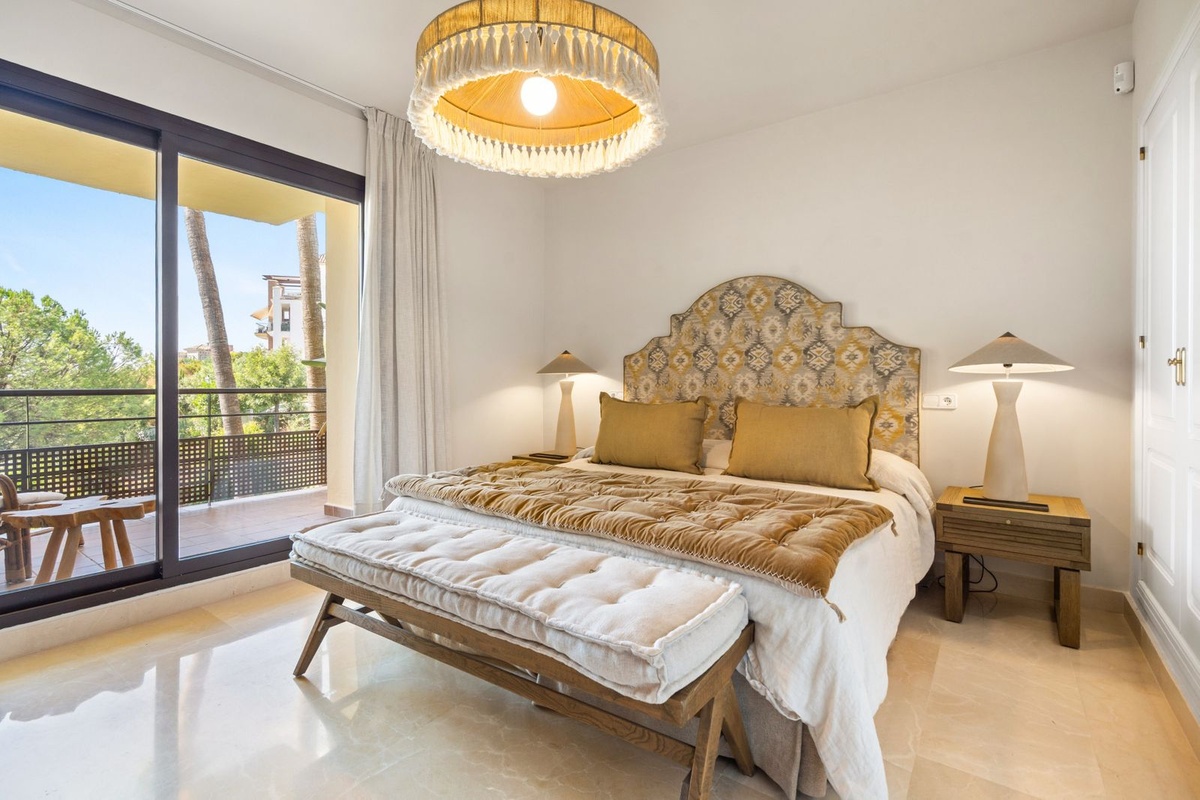 Discover this bright and elegant 3-bedroom, 2-bathroom apartment located in the sought-after Los Pinos community within Los Arqueros Golf & Country Club. Set in a peaceful and secure environment, the property enjoys an elevated position with beautiful views of the gardens and the Mediterranean Sea.