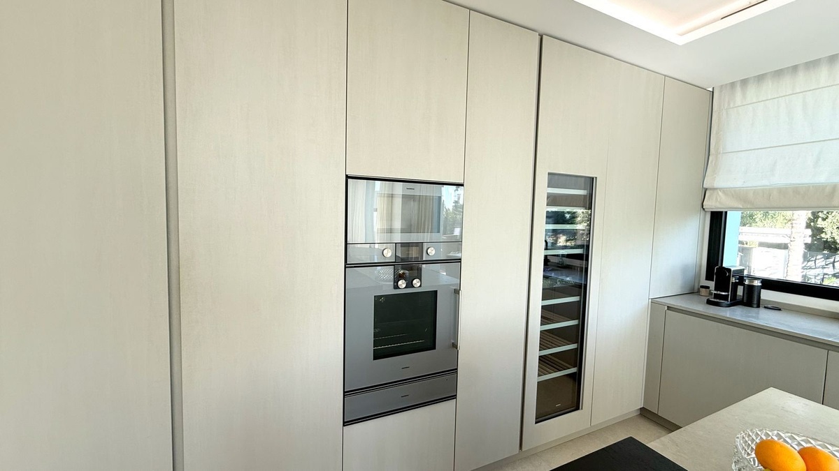 Additional amenities include double-glazed windows, a cutting-edge home automation system, Dolby stereo surround sound, a laundry room, and high-speed internet. The covered terrace is ideal for al fresco dining, while fitted wardrobes offer ample storage space.