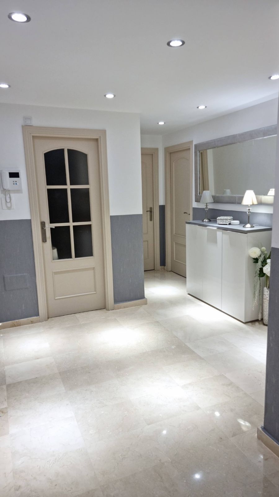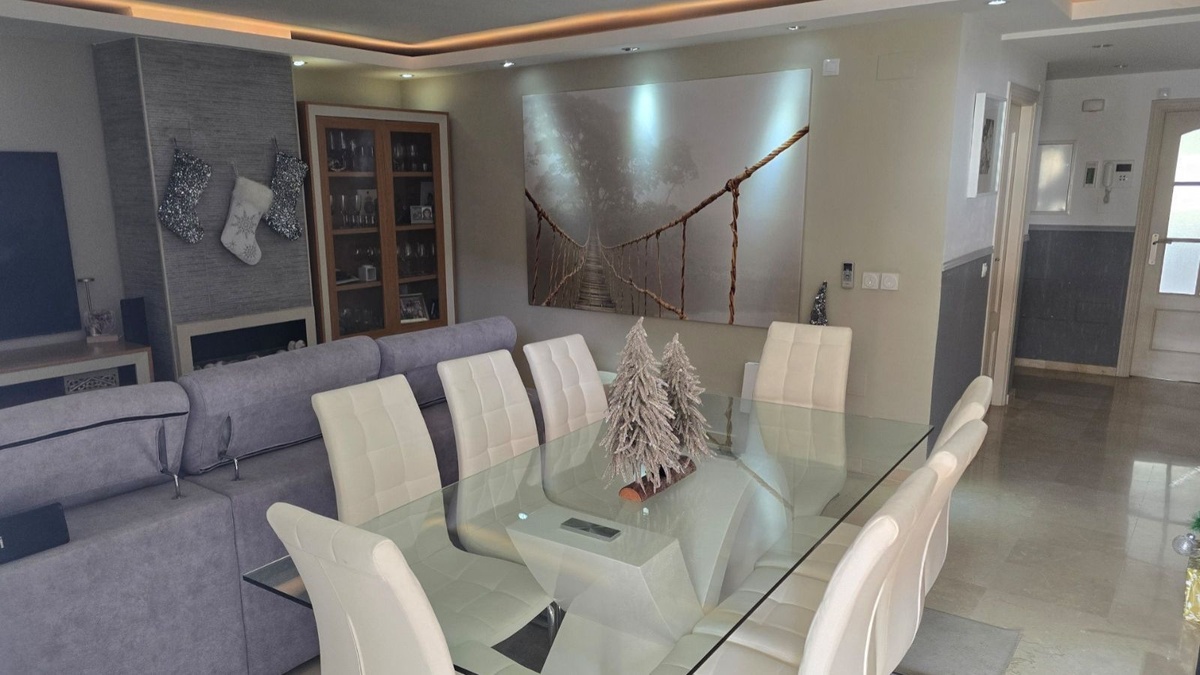 Designed to maximise light, comfort and style, the interior offers a spacious and luminous living-dining area with a bioethanol fireplace and pre-installation for a traditional fireplace, creating a refined yet cosy ambiance throughout the year. The property comprises three double bedrooms with fitted wardrobes and three bathrooms, one of which has been adapted for laundry and storage purposes. The bathrooms feature elegant finishes, including a designer walk-in shower and a bathtub, combining functionality with modern design.