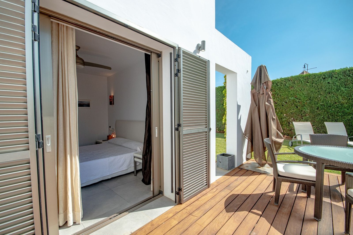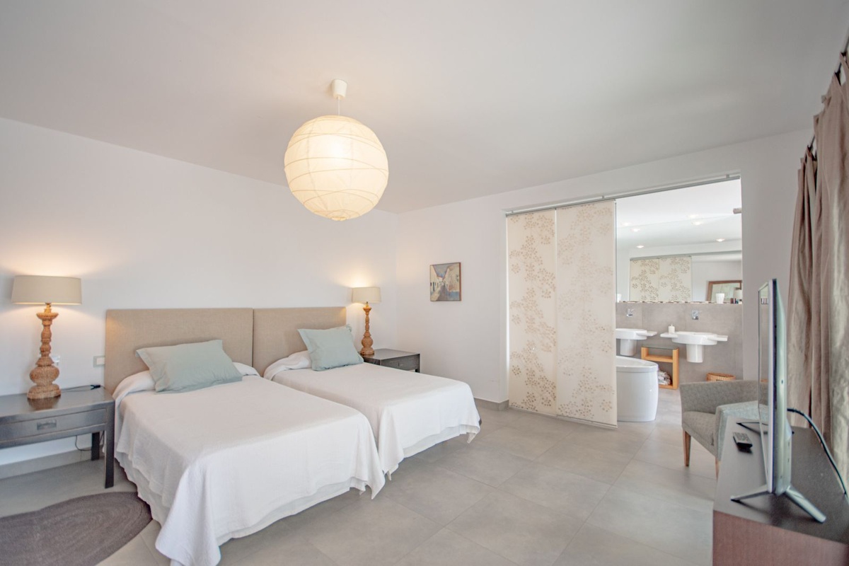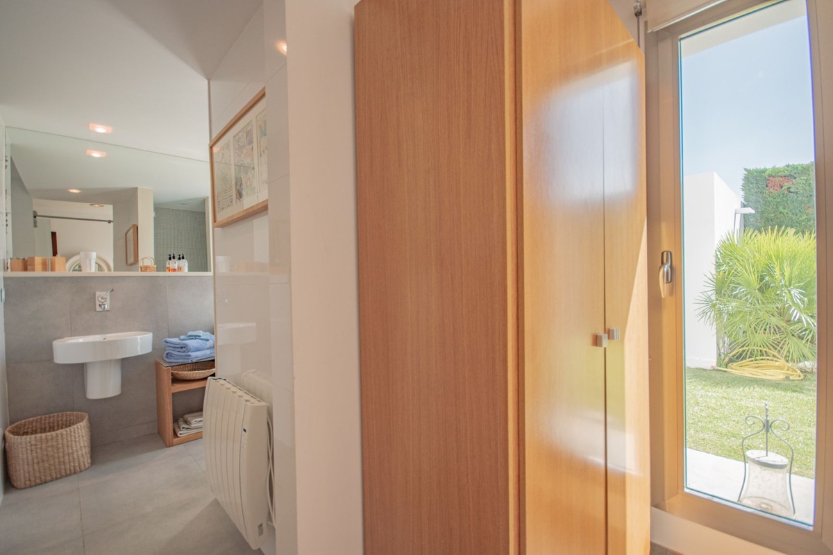 The bedrooms stand out for their spaciousness, natural light, and direct access to the outdoors. The master bedroom has an en-suite bathroom and access to the garden, creating an intimate and relaxing atmosphere.