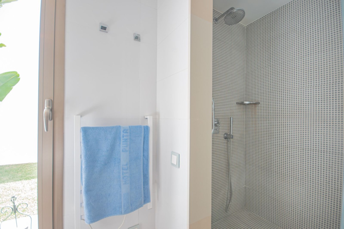 The bathrooms, with modern lines and neutral tones, combine elegance and functionality, providing a feeling of well-being typical of a small spa.