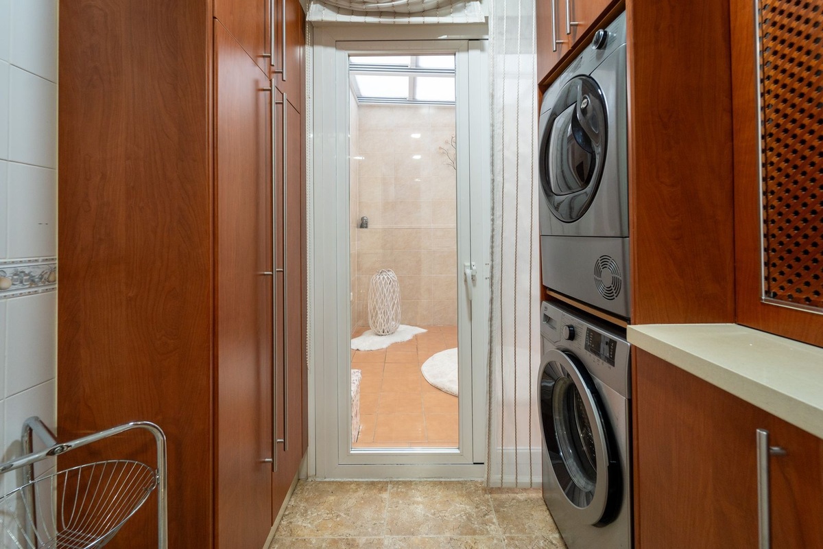 The property offers a spacious south-facing terrace with all-day sun and a fully equipped private sunny garden facing south with lighting, outdoor shower, built-in BBQ, and awning for shade in summer — perfect for year-round outdoor living.