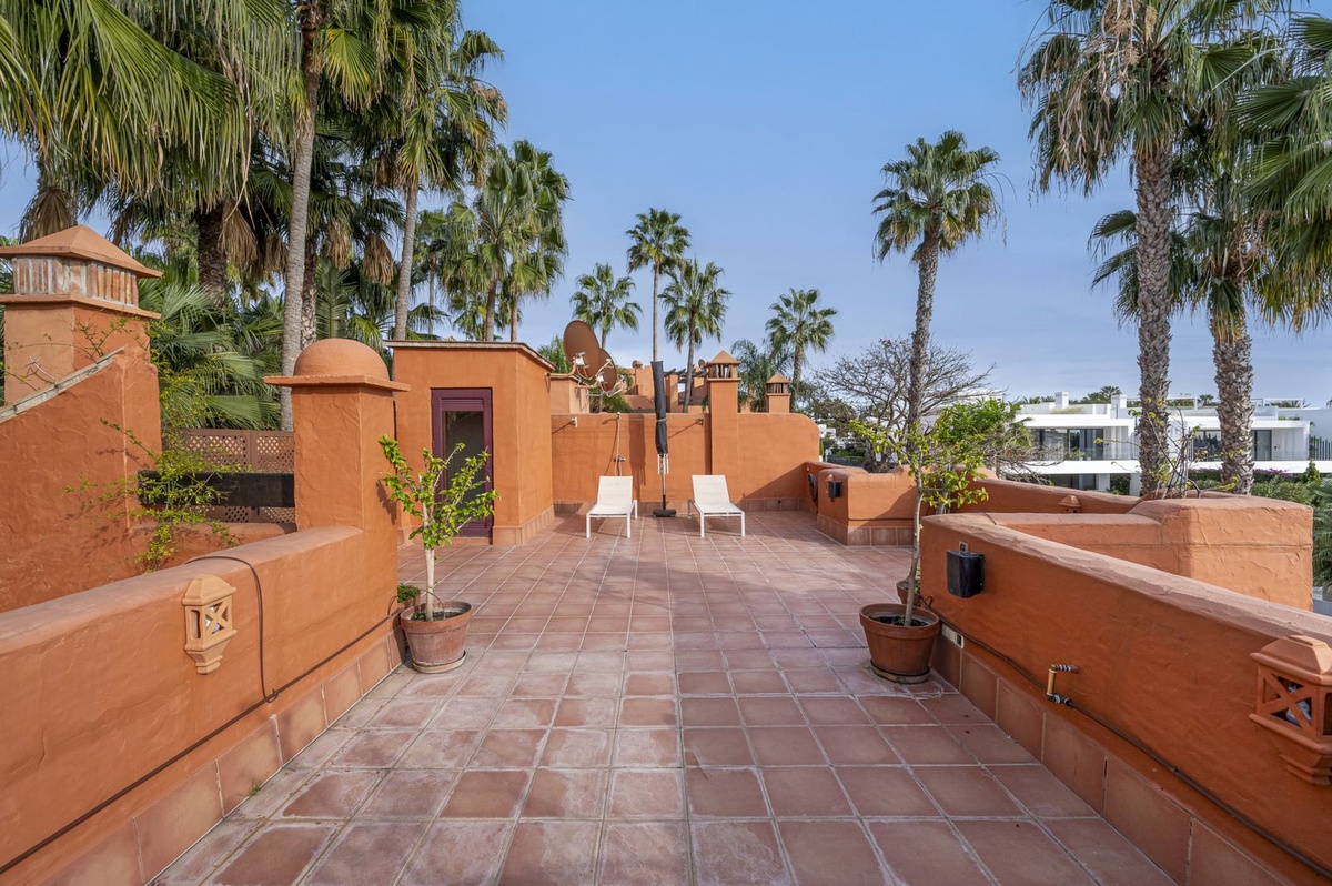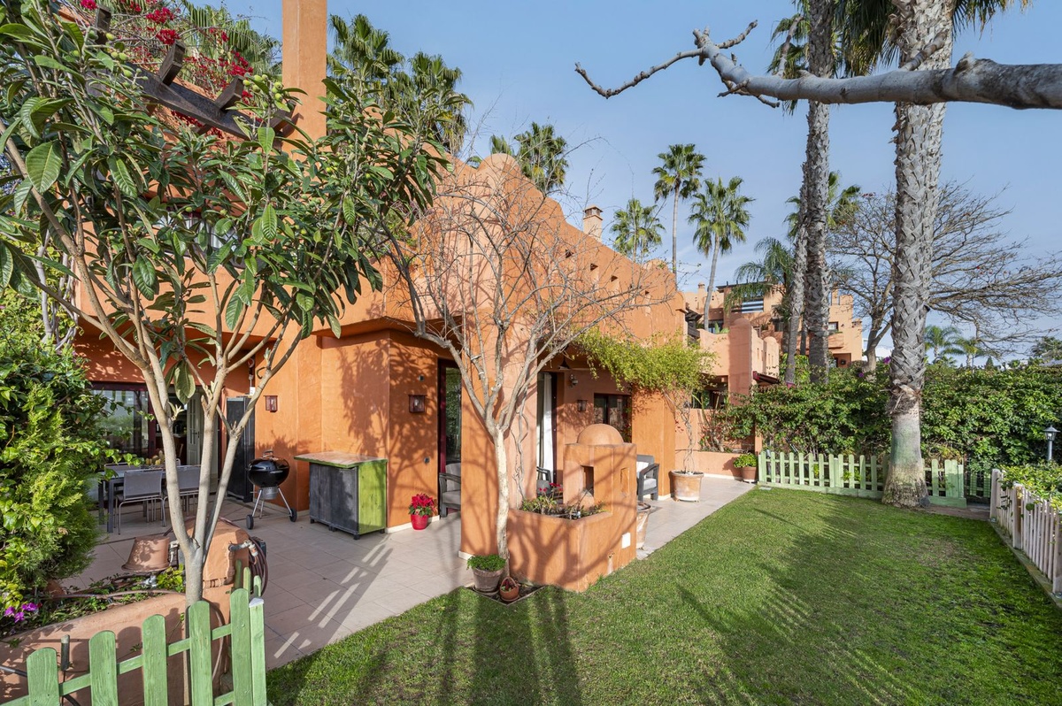 Set within one of the most prestigious enclaves of the Golden Mile, this exceptional townhouse is located in an exclusive Mediterranean-style residential community, just a short walk from the iconic Puente Romano and Marbella Club resorts and the beach.