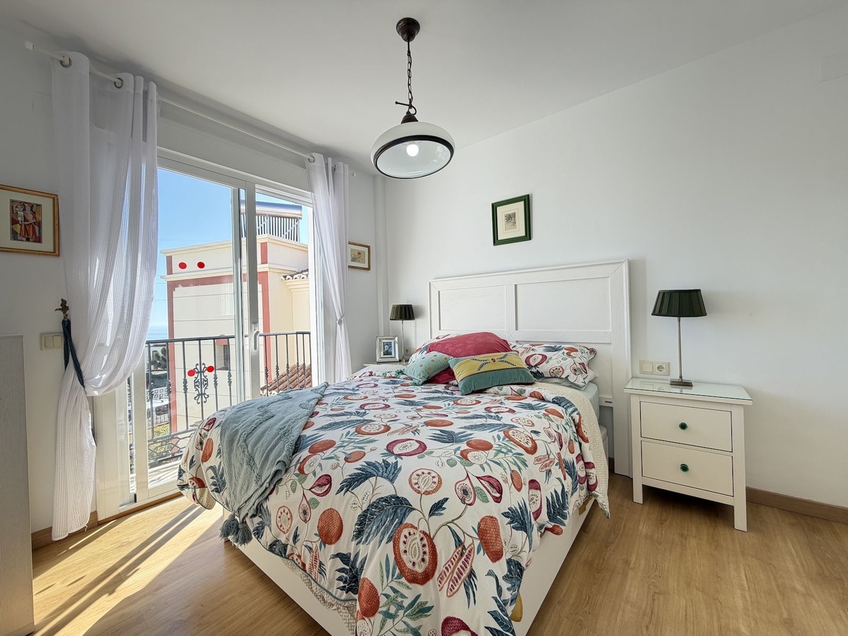 De hoofdslaapkamer heeft zelfs een eigen Juliette balkon met uitzicht op zee.