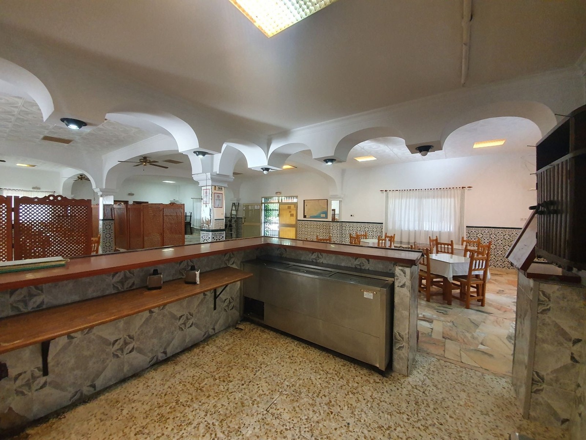 A typical Spanish roadside restaurant - a so called Venta - with a spacious open-plan area featuring high ceilings, covering 256 m². This space can be divided into different sections or rooms using wooden partitions. It has a large fireplace and a bar area with a 28 m² workspace for the waitstaff, including storage space and an independent kitchen of 37 m² with two access points, one directly to the bar and the other to the dining area. There are two restrooms (ladies and gentlemen), each measuring 11 m², a large covered terrace at the entrance, and a patio at the back with a barbecue and more space for outdoor seating. There’s also a small stage for flamenco performances and concerts. Additionally, there’s a beautiful and spacious garden with a playground for children and parking for around 30 cars or more. Finally, there is a private vehicle entrance, perfect for deliveries, and to allow private vehicles to reach the rear of the kitchen and the 44 m² storage area nearby.