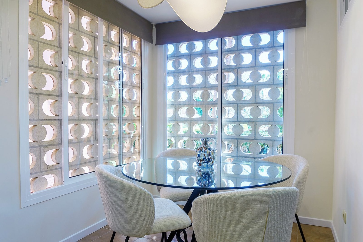 Spanning a total built area of 137m², with 112m² of stylish interior living space and a generous 25m² private terrace, the apartment provides an ideal blend of comfort and sophistication. The property comprises two spacious bedrooms, including a master suite with an en-suite bathroom, an additional bathroom, and a separate guest toilet. All rooms are equipped with air conditioning, ensuring a pleasant atmosphere year-round. The apartment further benefits from modern aerothermic heating, high-speed fibre optic internet, and Wi-Fi connectivity throughout.