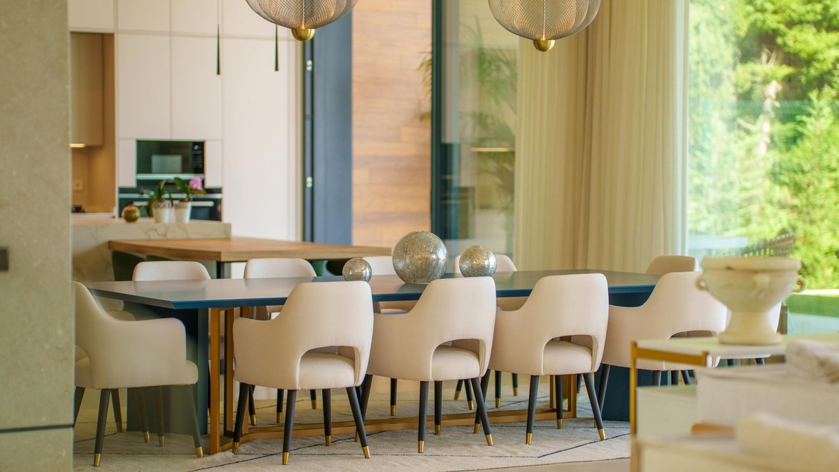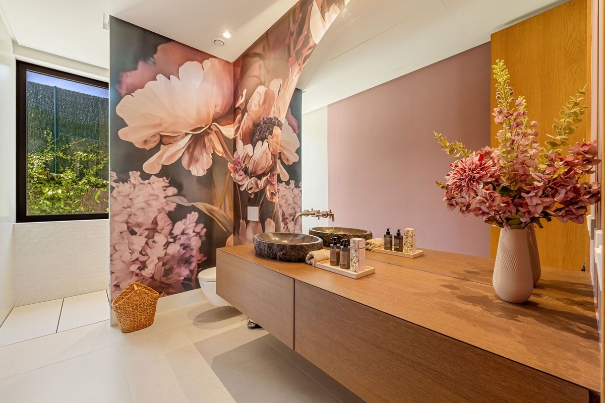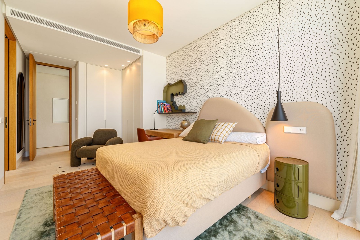 The main floor offers seamless indoor-outdoor living with an open-plan lounge and dining area that flows to expansive terraces and the pool. Floor-to-ceiling glass doors flood the home with light, while the designer kitchen, double-height ceilings, and thoughtful layout make it ideal for family life and entertaining. The villa includes six spacious bedrooms, with a standout primary suite featuring a walk-in wardrobe and luxurious en-suite bathroom. Additional highlights include a home office, a private entertainment level with a gym, media area, and leisure spaces. Outdoors, residents enjoy a private pool, manicured lawns, and both shaded and sunlit terraces. Secure entry, ample parking, and integrated climate and lighting systems complete this turnkey residence in one of Marbella’s most desirable neighborhoods.