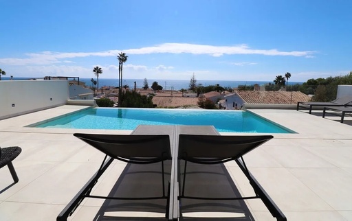 MODERN VILLA WITH SEA VIEWS JUST 200 METERS FROM THE BEACH FOR SALE IN EL CHAPARRAL, MIJAS COSTA A newly built sea-view villa with an infinity pool and ...