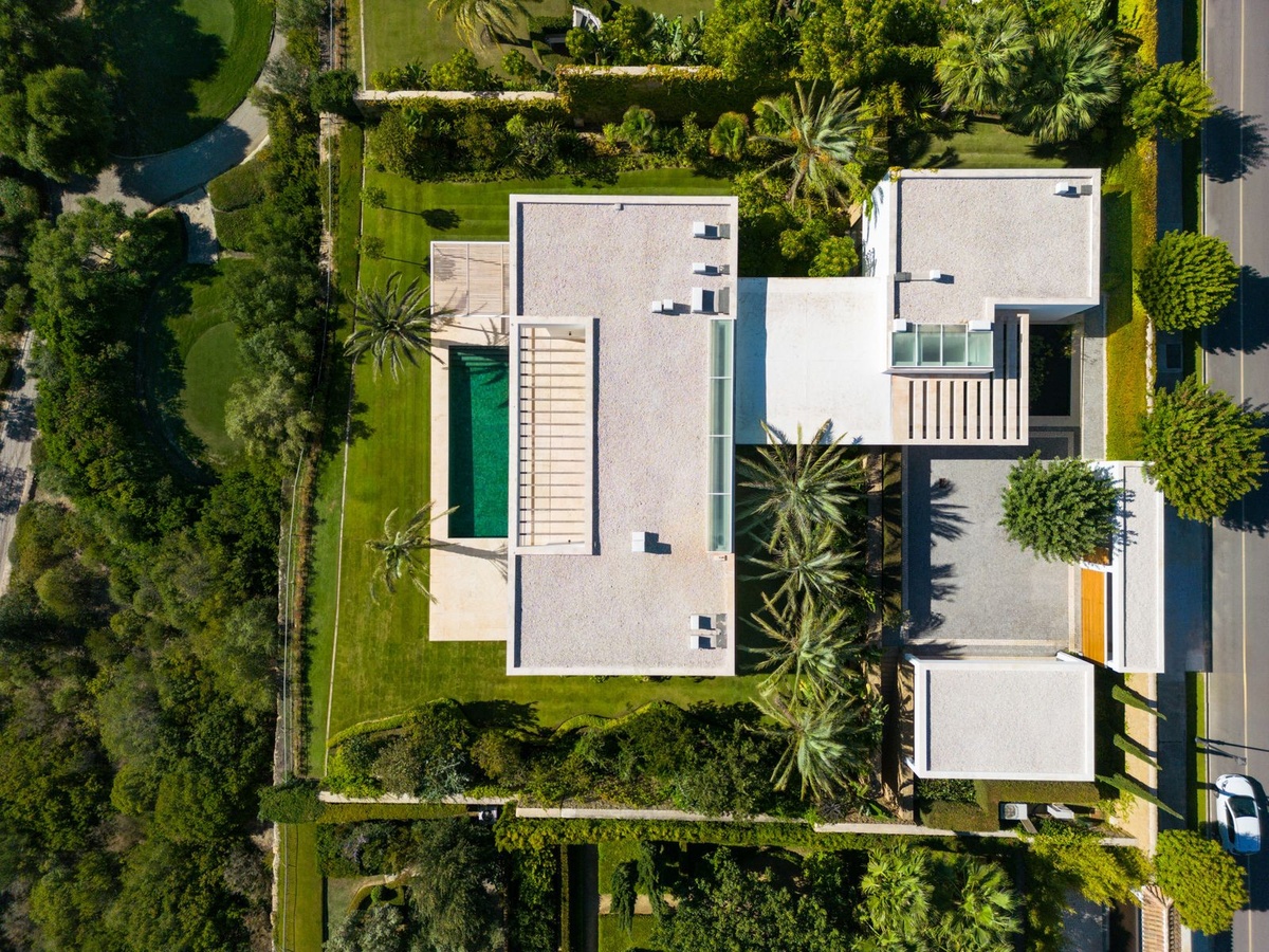 This exquisite villa, nestled beside the Finca Cortesin golf course, presents an extraordinary opportunity for residents to immerse themselves in the lavish Mediterranean lifestyle. Poised within the Finca Cortesin resort, this residence affords sweeping vistas of the lush fairways and the Mediterranean Sea. The architectural brilliance of Miguel Olazabal shines through, lending the home a modern allure that epitomises luxury. Set upon an expansive plot, the villa welcomes guests with a captivating entrance adorned with a picturesque lake and meticulously landscaped gardens. Spanning two levels, the four bedrooms are located on the upper floor, while an additional fifth bedroom is conveniently located on the ground level. Inside, the interiors exude elegance with their soft neutral tones and tasteful wooden accents, creating a seamless sense of harmony throughout. The ground floor is home to the well-appointed kitchen, complete with Gaggenau appliances and a comfortable living area that effortlessly connects to the outdoors through a wealth of glass sliding doors. Embracing the concept of indoor-outdoor living, the carefully landscaped gardens create a verdant oasis that melds seamlessly with the interior spaces, offering a unique ambiance. A serene swimming pool complements the garden, inviting year-round enjoyment, while ample terrace space caters to al-fresco dining and chill-out spaces. With its privileged frontline position, breathtaking views and stunning architectural design, this extraordinary property epitomises the exclusive luxury golf lifestyle found only at Finca Cortesin.