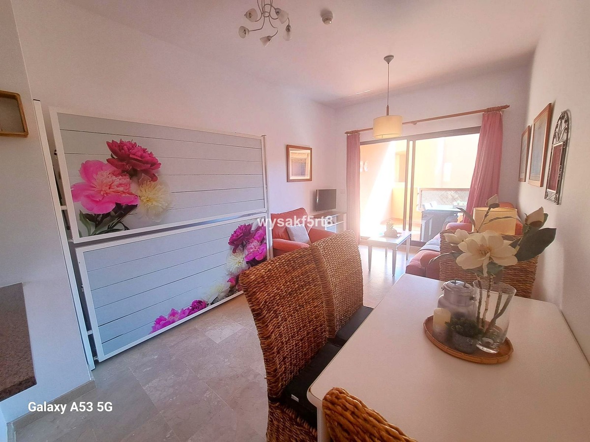 It consists of an apartment with 1 bedroom, and 1 bathroom. The living room has a comfortable size of 15 m2 that leads onto a southeast 12 m2 terrace with views of the communal pool and beach. The master bedroom leads out to the main 12 m2 terrace with beautiful views of the communal garden, pool, and beach.