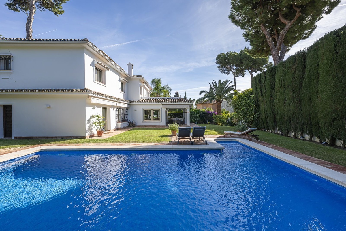 Mediterranean style villa just steps from the sea in the prestigious Los Monteros urbanization, Marbella.