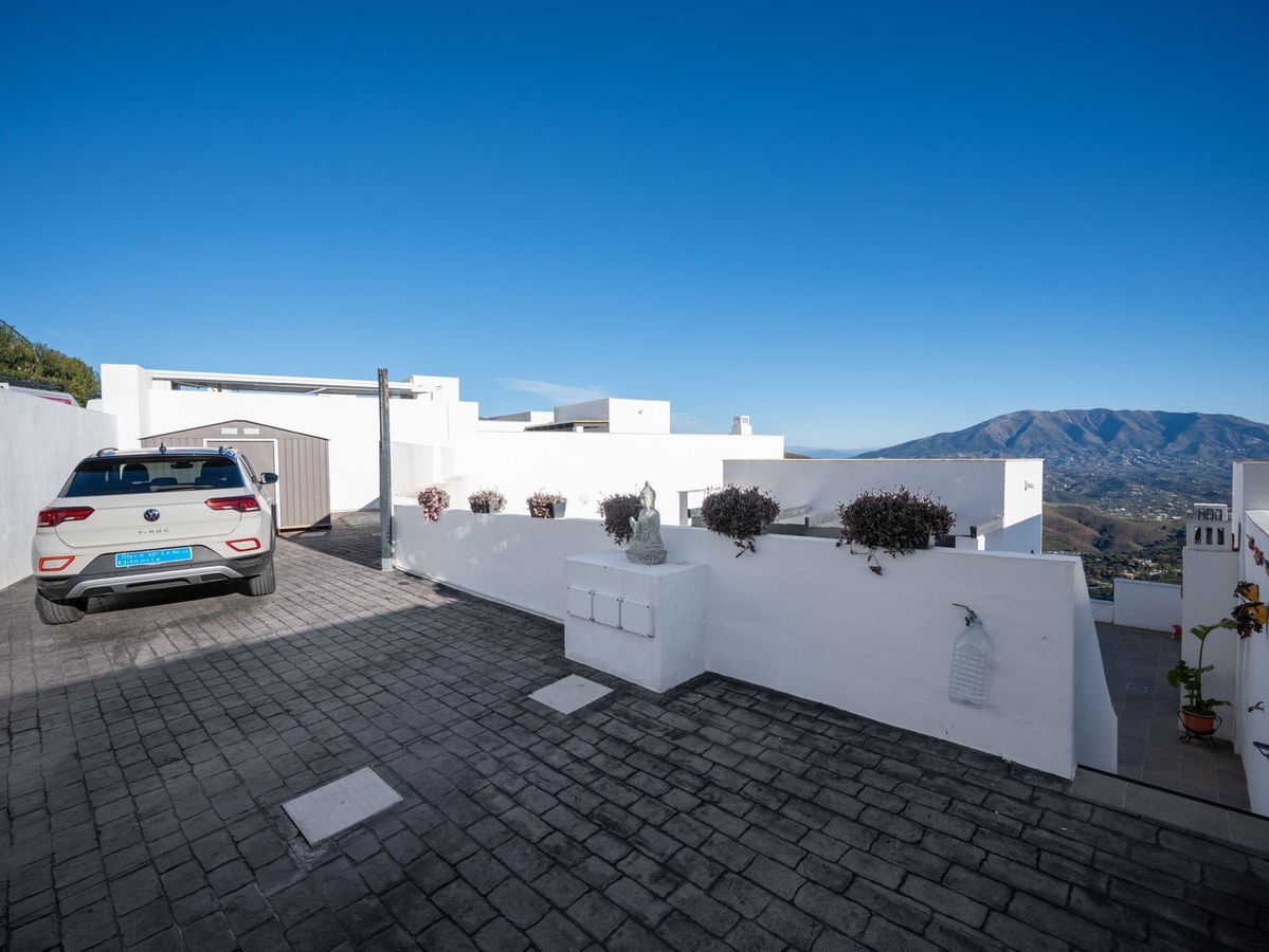 Casa Altavista is a south east facing luxury townhouse for sale with panoramic mountain sea and coastal views. It offers three bedrooms and three ensuite bathrooms within 172 m2 built. The modern spacious kitchen has a view and direct access to the internal patio. Open plan living and dining areas lead to the main terrace with a gate to a small private garden. The home includes air conditioning central heating a wood burning fireplace two private parking spaces and a storage room.