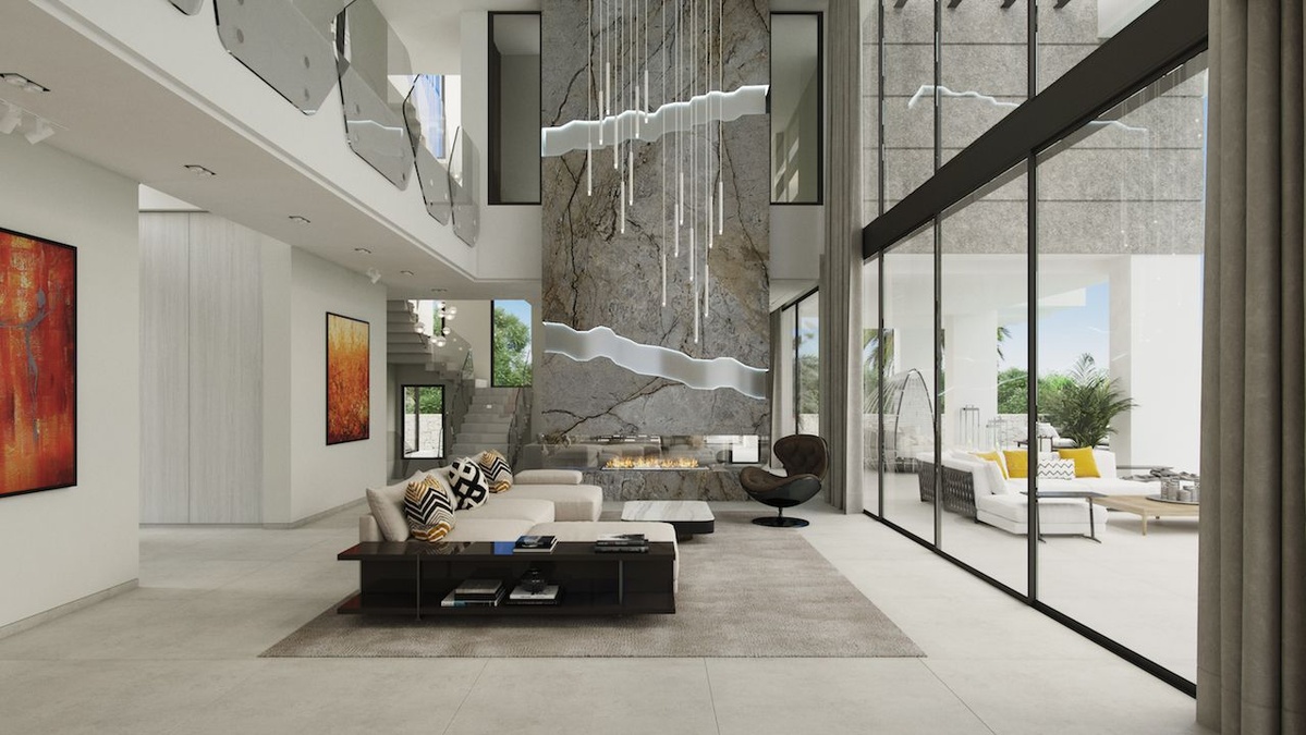 Проект разработан известным архитектурным бюро Villarroel Torrico в современном стиле с концепцией наслаждения панорамными видами на Средиземное море и горы Сьерра-Бланка из любой части дома.
