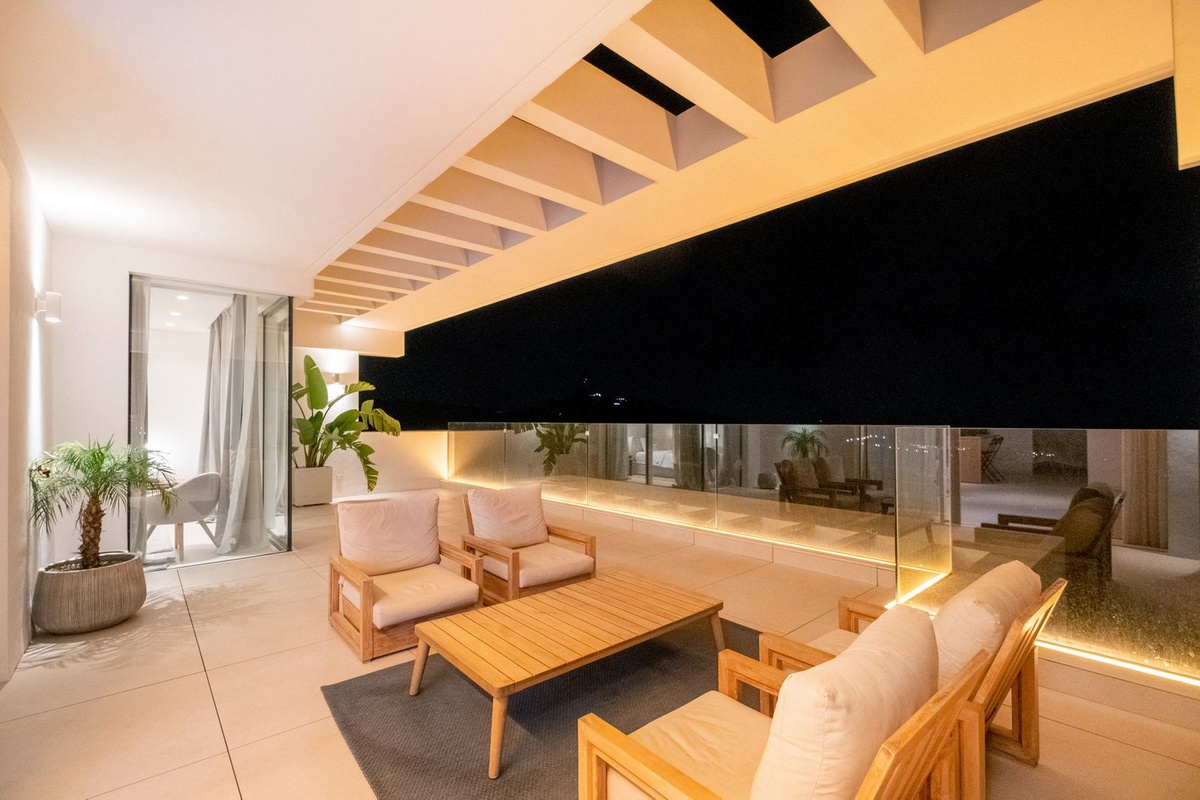 Going out to the the terrace, you are immediately amazed by one of the best sea and mountain views you can possibly find in Marbella. Each corner offers a private seating area with its own privacy as well. The main terrace has a jacuzzi, lounge area and staircase leading to the rooftop terrace.