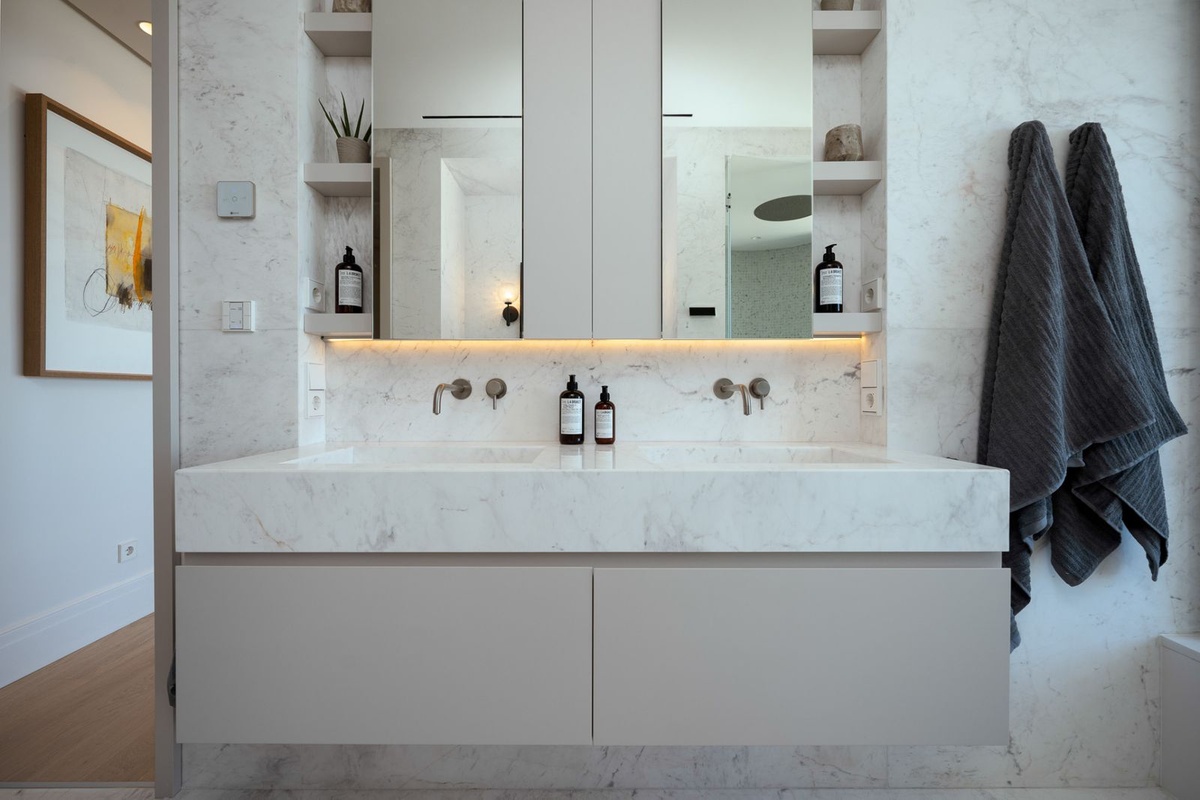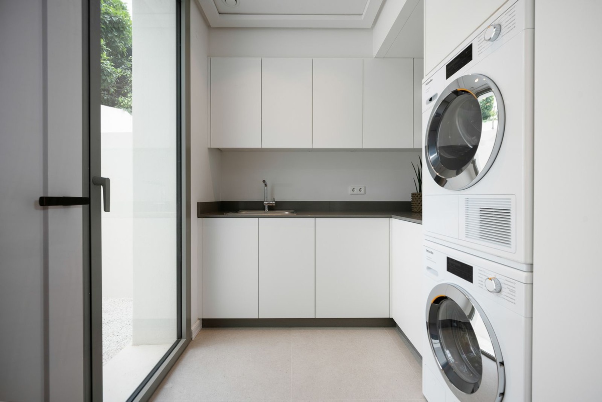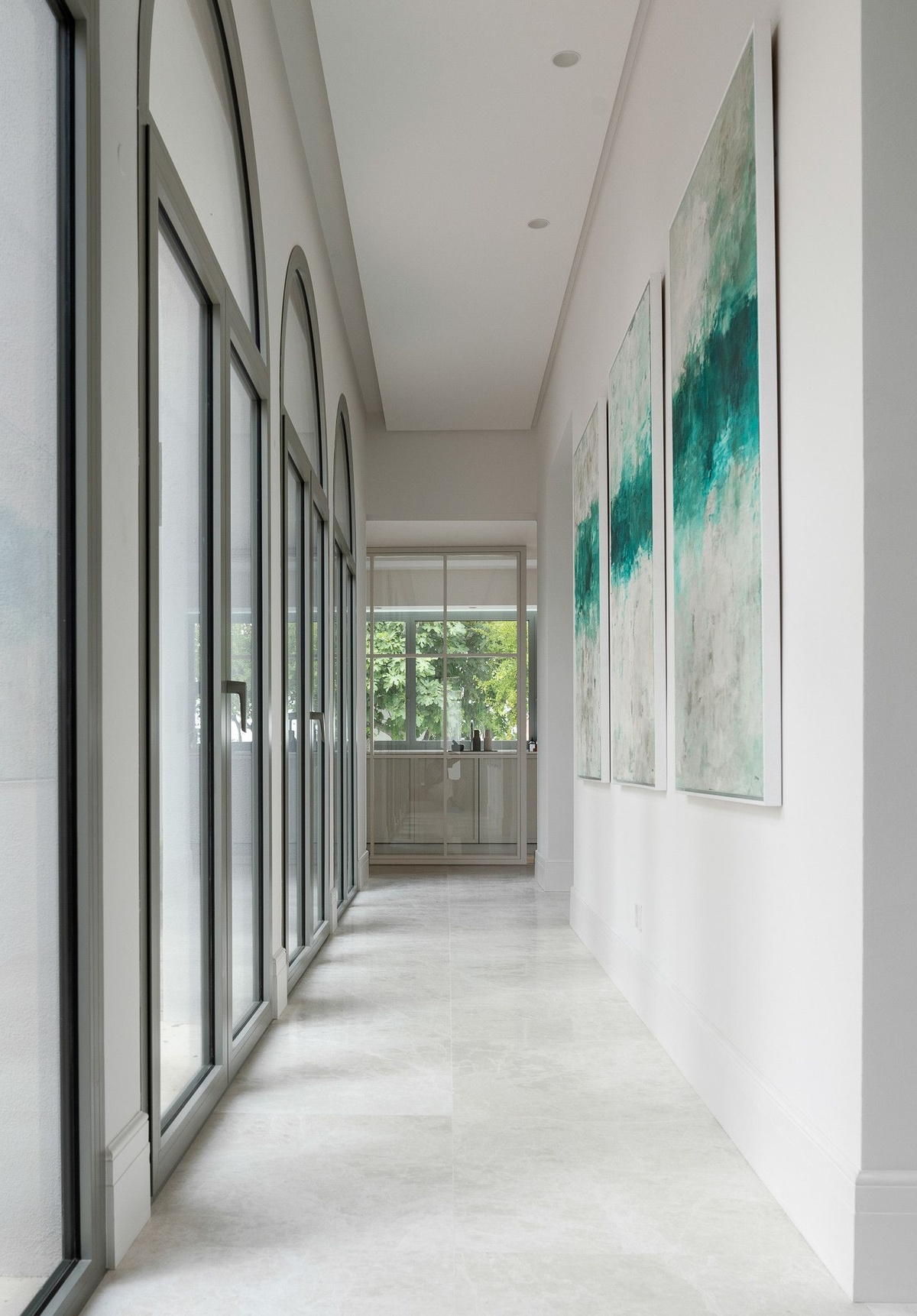 Upon arrival, a private driveway leads to a charming Andalusian-style courtyard. This traditional feature contrasts beautifully with the villa’s modern design, providing a warm, welcoming first impression. Once inside, the double-height entrance hall features natural light flooding through large windows, with polished marble flooring setting the tone for the rest of the home.
