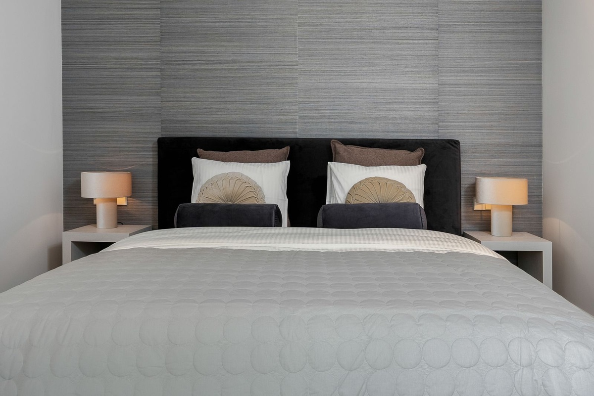 The ground level features an expansive open-plan living area that integrates the lounge and dining room, complemented by a designer kitchen from Danespan. Fitted with premium appliances and custom cabinetry, the kitchen opens directly to both interior and exterior dining spaces, ideal for everyday living and entertaining. Also on this level are two en-suite guest bedrooms, a guest toilet, a TV room, and a utility/laundry room for convenience.