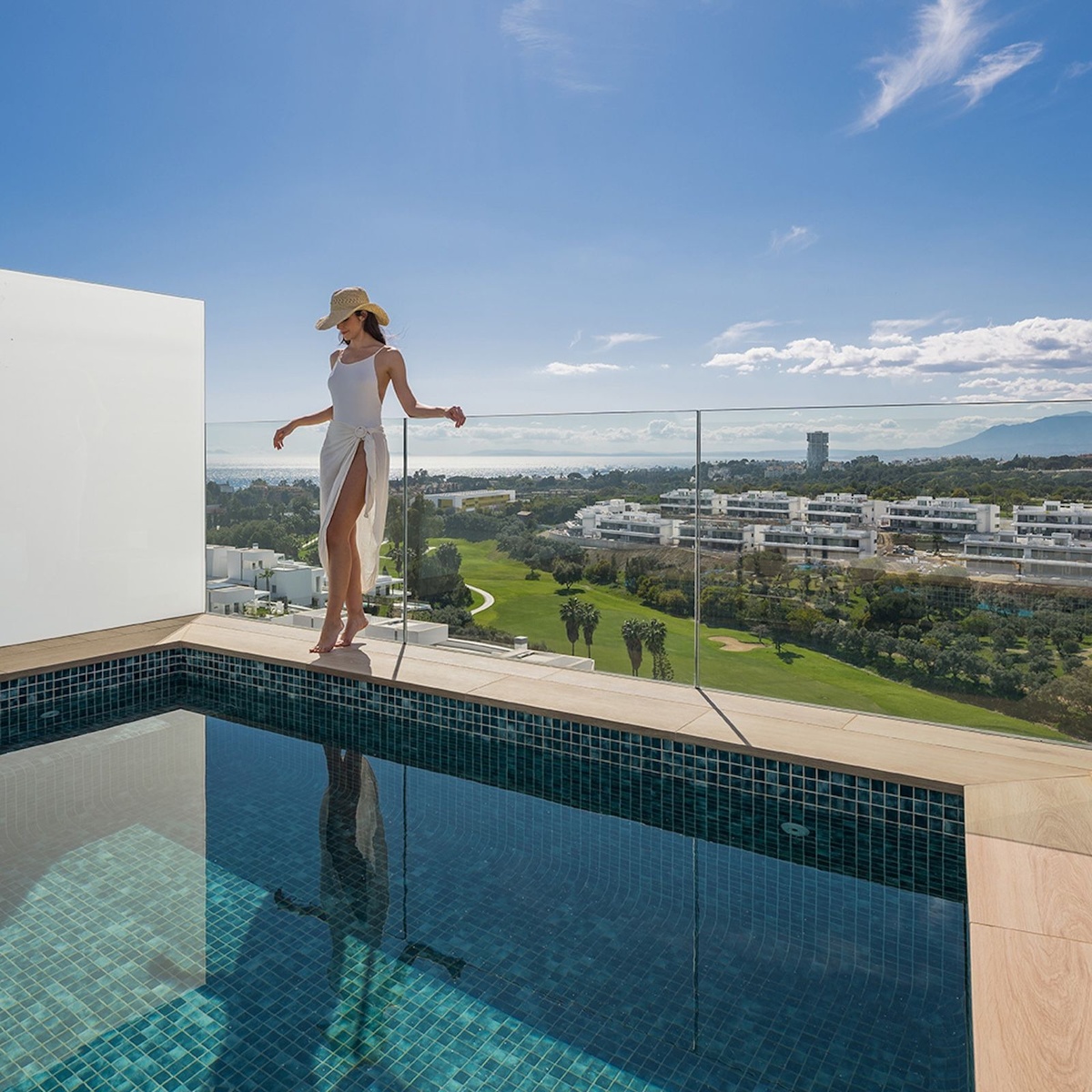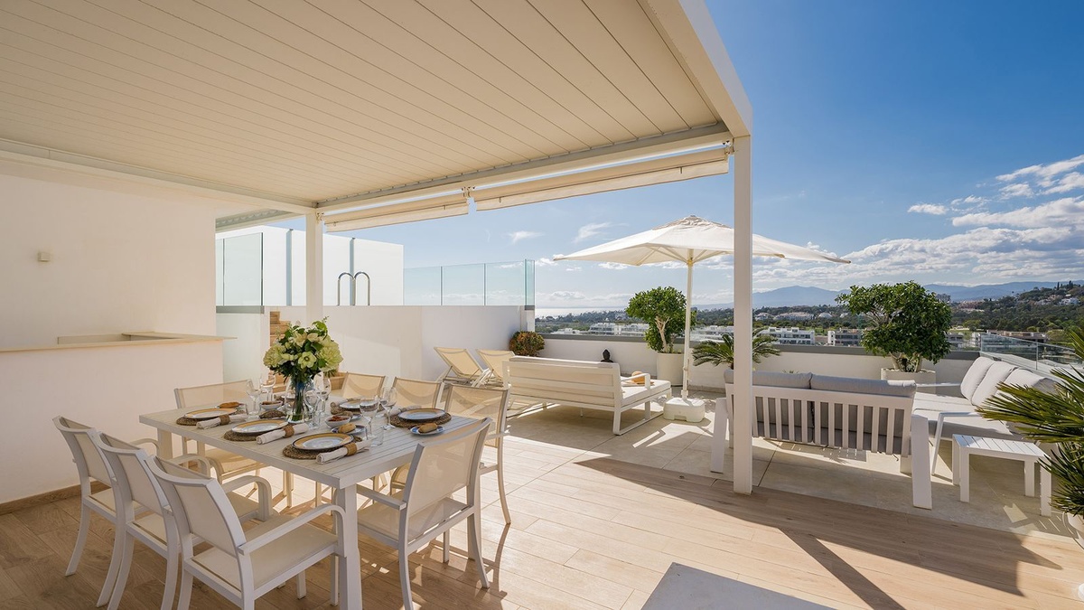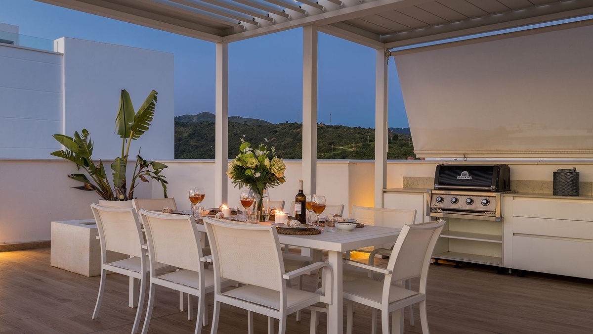 Одна из лучших частей этого дома - открытое пространство, которого здесь предостаточно. 173 м² солнечных террас, включая огромный солярий на крыше, - все, что вам нужно, чтобы погрузиться в средиземноморский образ жизни. Понежьтесь у частного бассейна, расслабьтесь в чил-аут зонах или примите семью и друзей на открытой кухне со встроенным барбекю и обеденной зоной - и все это с фантастическим видом на море и гольф.