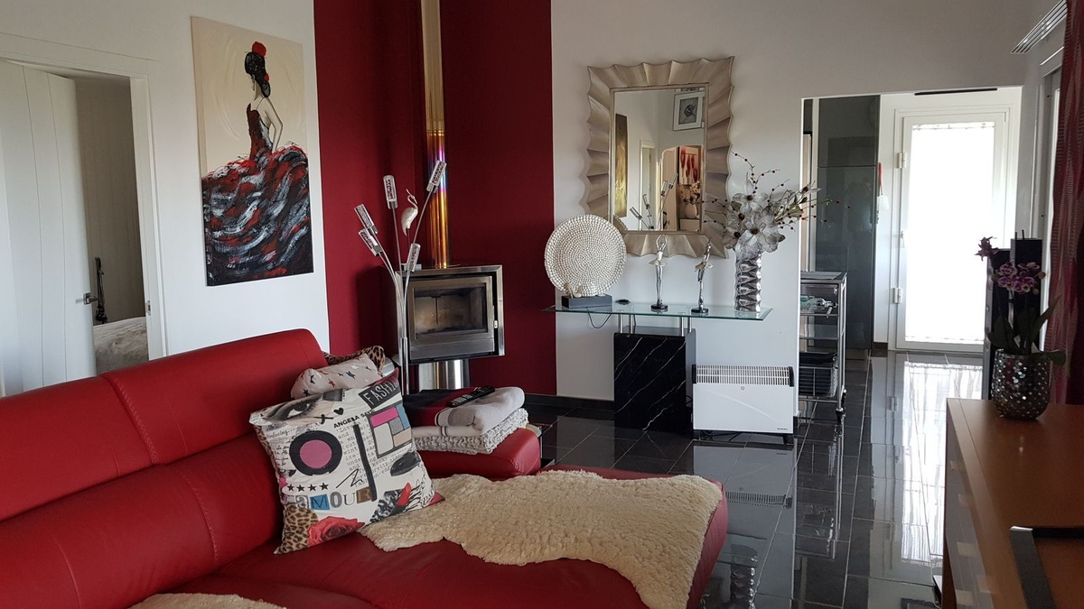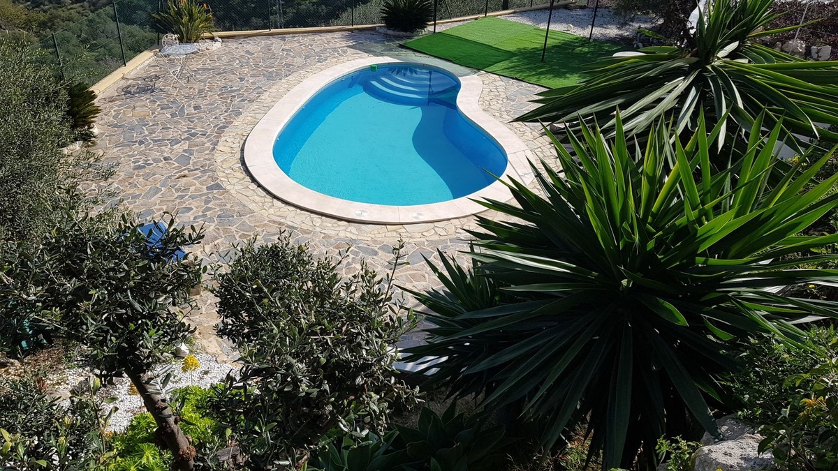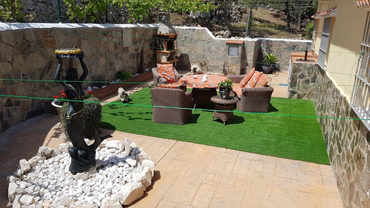 В этом красивом загородном доме, построенном в 2012 году, есть большой гараж с мастерской (около 45 м²), гостевая квартира (около 45 м²) с гостиной и кухней открытого плана, душевая комната и отдельная большая терраса. Жилая площадь составляет около 90 м². Здесь есть 2 спальни, 2 ванные комнаты (одна из них с ванной) и кухня открытого плана - очень продуманная, ей всего 3 года. Большая терраса площадью около 30 м² с прекрасным видом на горы до Малаги и Сьерра-Невады доступна из гостиной, еще одна терраса расположена за зданием. Есть частный колодец и большой подземный резервуар емкостью 11 000 литров для питьевой воды на случай недостатка подземных вод. Небольшой бассейн - без подогрева, кондиционера и отопления нет - только камин в гостиной. Участок площадью около 3 500 кв. м засажен оливковыми деревьями, лимонными деревьями, виноградниками, миндальными деревьями и т.д.