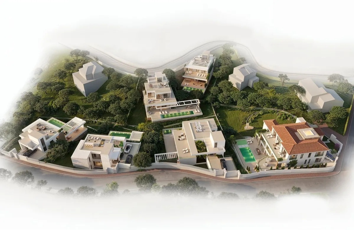 The project includes 5 individual villas developed by one of the most celebrated architects of Marbella. The villas will have spectacular views on the mountain La Concha, the emblem of the Costa del Sol, and some partial sea views from the rooftop solarium terraces.