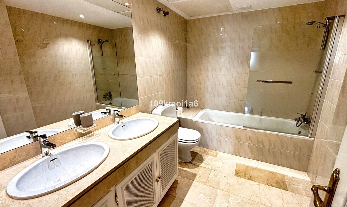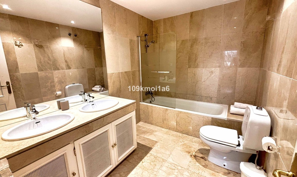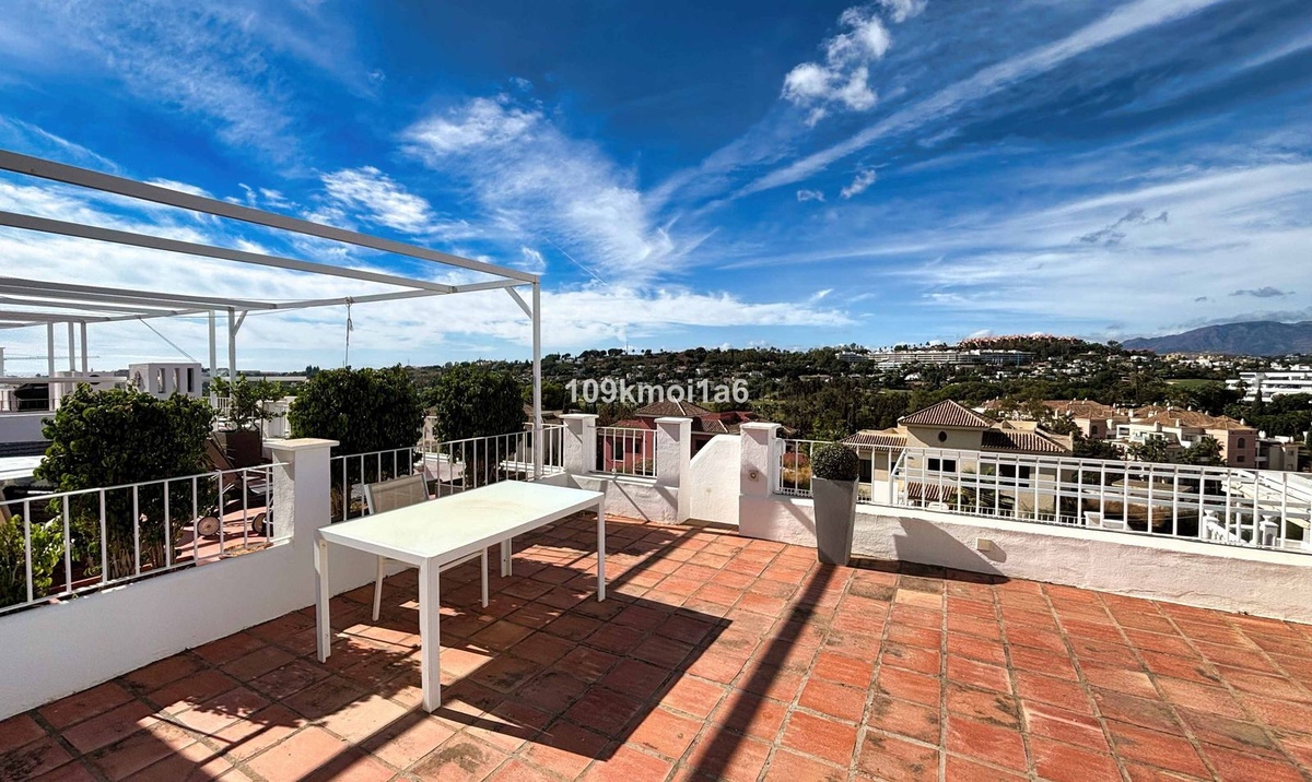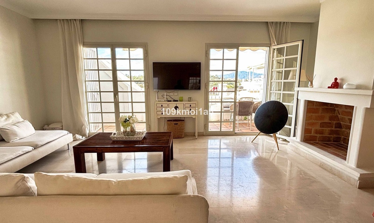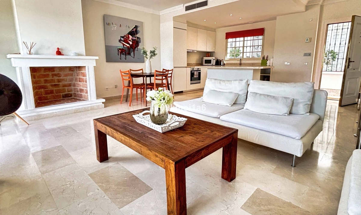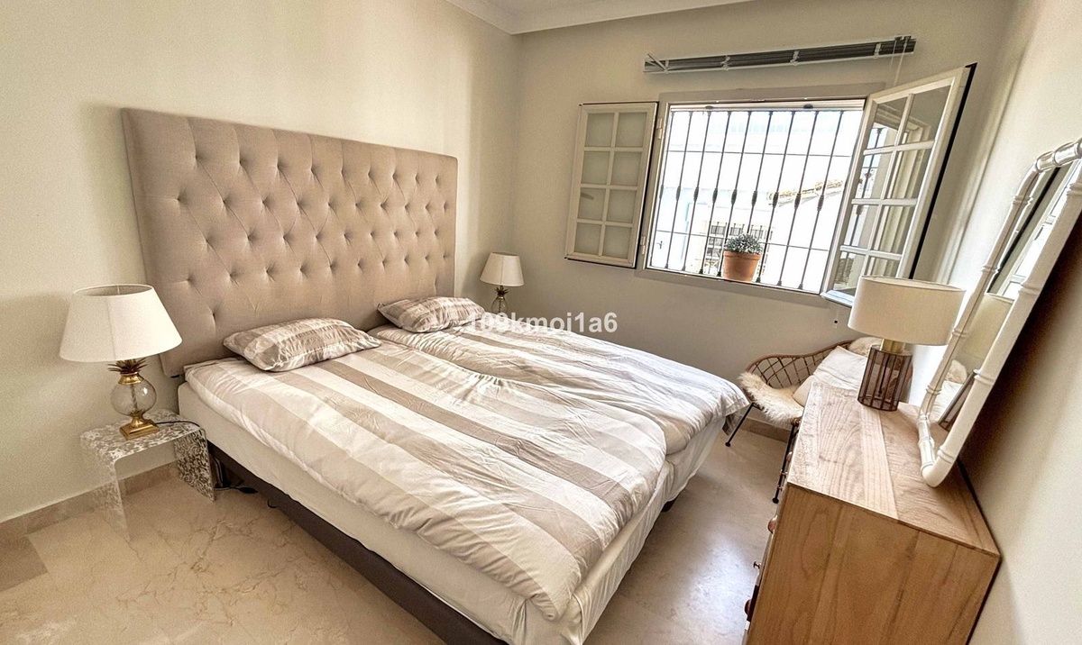 This stunning, fully renovated two-bedroom, two-bathroom townhouse in Aloha Pueblo blends modern luxury with traditional Andalusian style. The spacious living area features a fireplace, and the sleek kitchen comes equipped with top-tier appliances. Both bedrooms have en-suite bathrooms, offering added privacy and comfort. The rooftop terrace boasts panoramic views of La Concha and the Mediterranean, ideal for relaxation or entertaining.