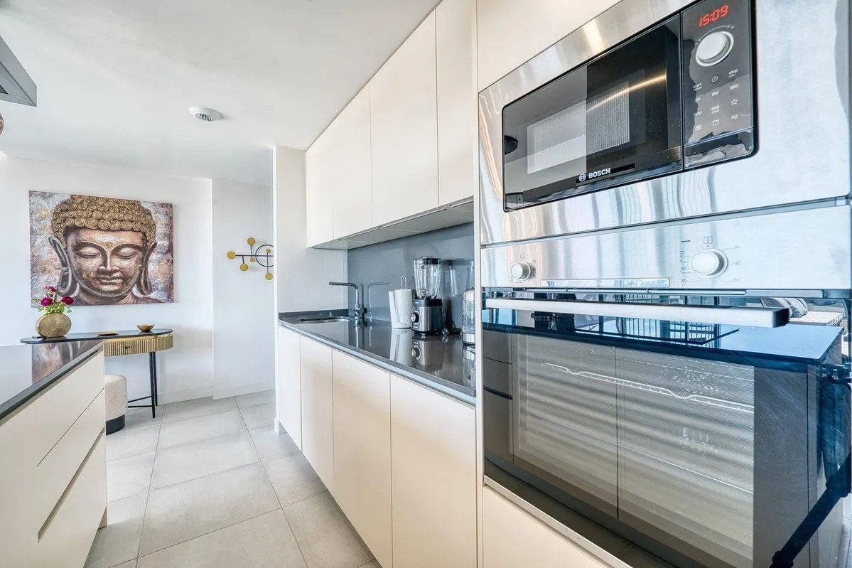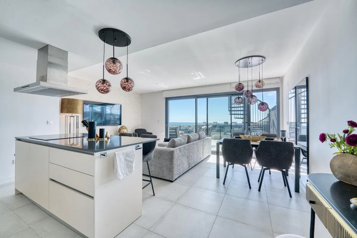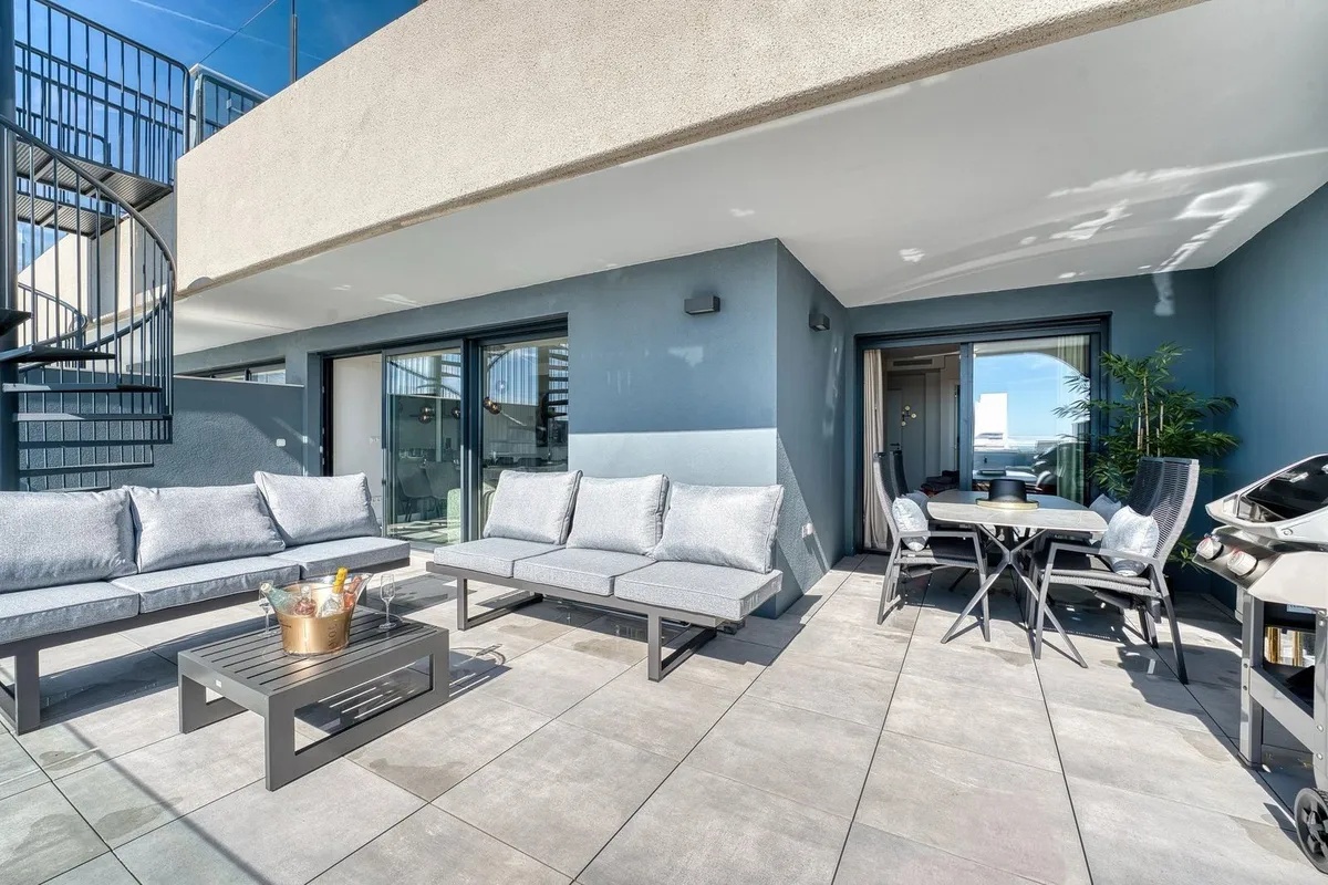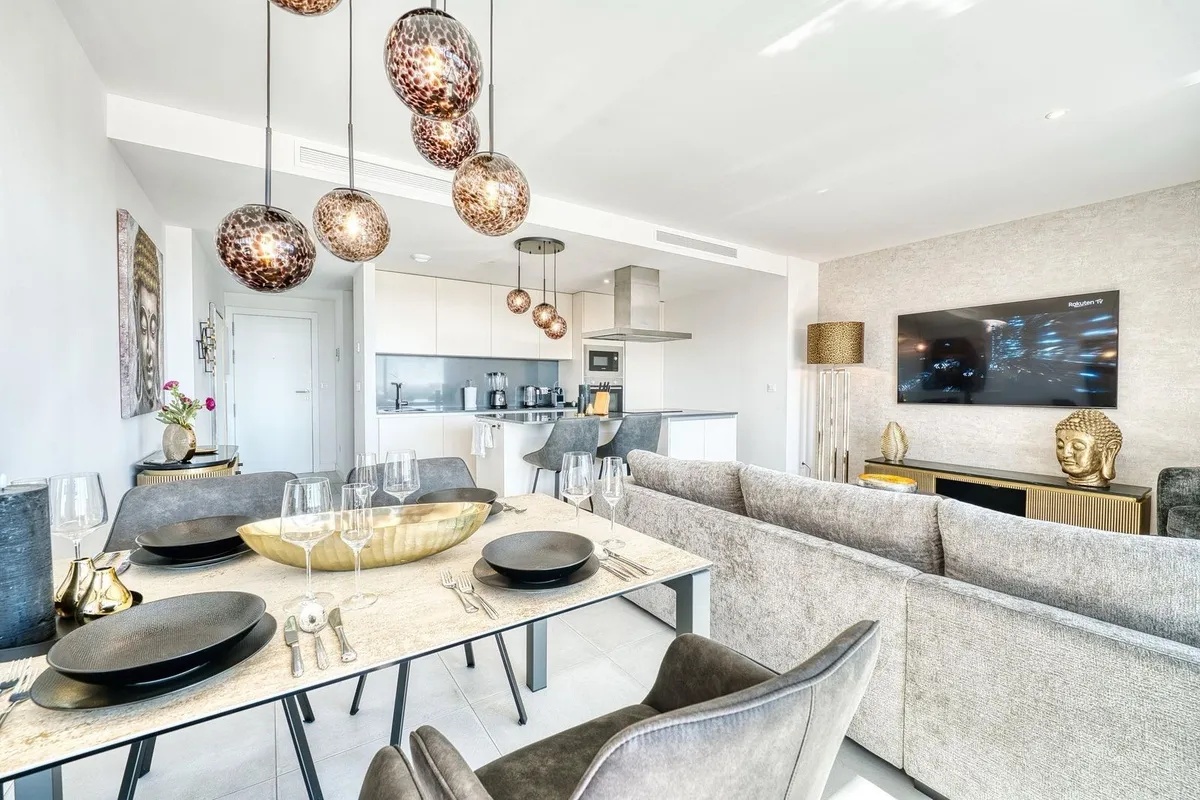 This stylish two-bedroom, two-bathroom apartment offers a spacious terrace with a dining area and lounge, plus an impressive rooftop terrace complete with lounge seating and a jacuzzi. Both terraces provide stunning, uninterrupted sea views stretching all the way to Gibraltar and North Africa.