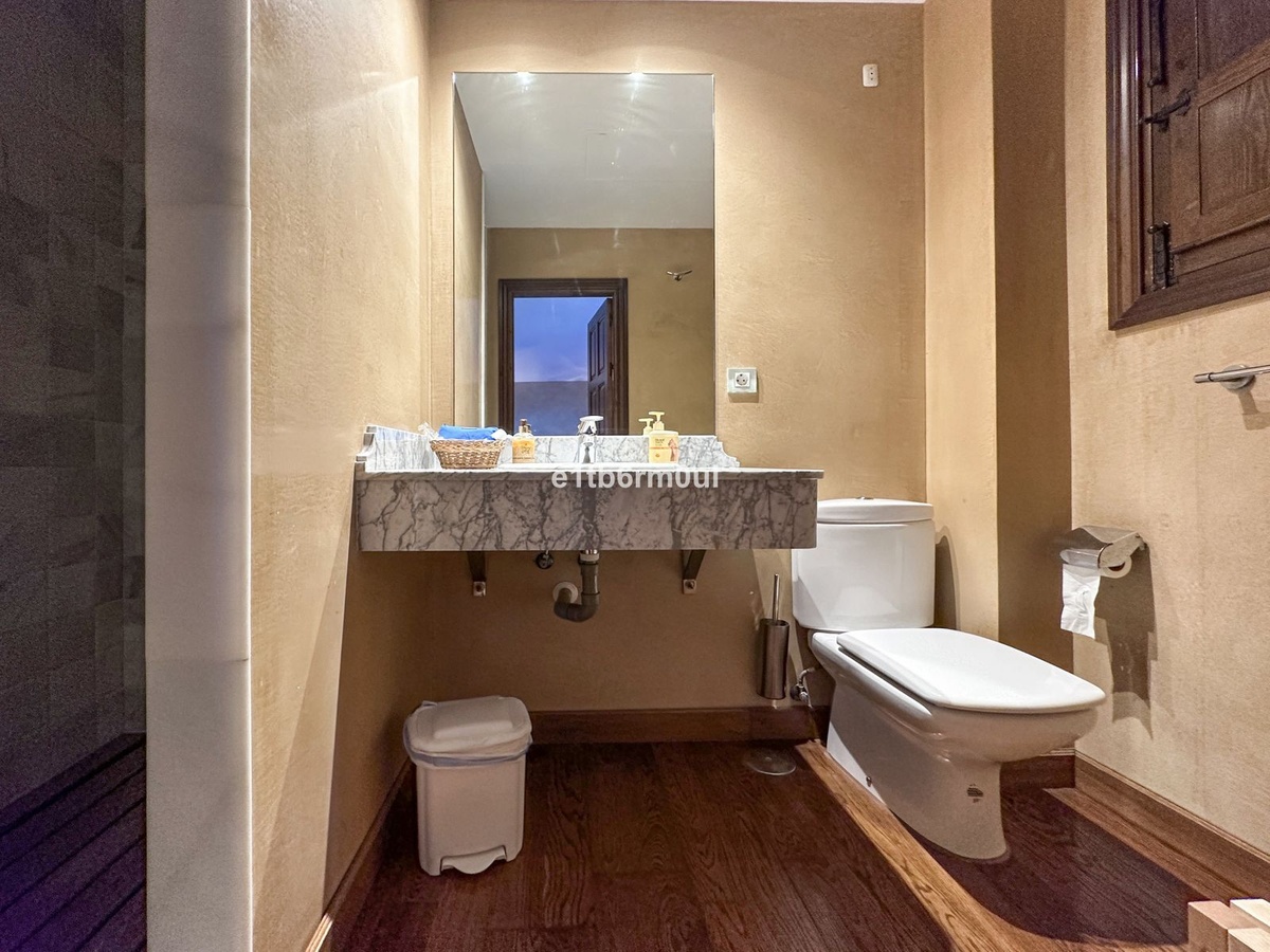 The main residence features on the ground floor an open plan layout with double height ceilings, a cosy fireplace and fully fitted kitchen with modern appliances and dining room area and a guest bathroom. On the first floor, four ensuite bedrooms all with outstanding views. Outside you have a lovely covered terrace, a large pool, and an immaculate garden framed with mature trees. Beyond the garden lies a separate studio built into the mountainside showcasing natural rock walls and adjacent a BBQ pit. Add to this the extensive plot, a chicken coop, stables, fruit trees galore and a perfect allotment area with scope to grow your vegetables. All the space needed to live an authentic country life but only a five-minute drive to amenities.