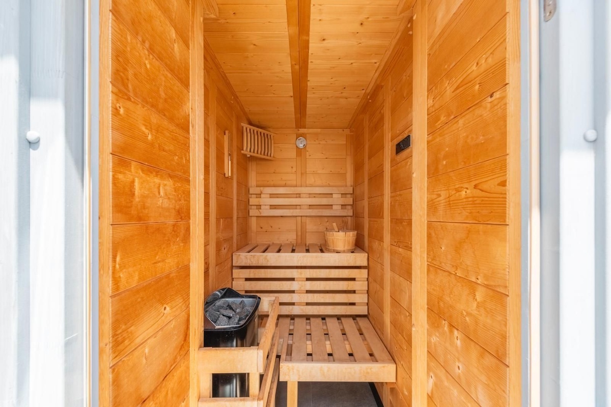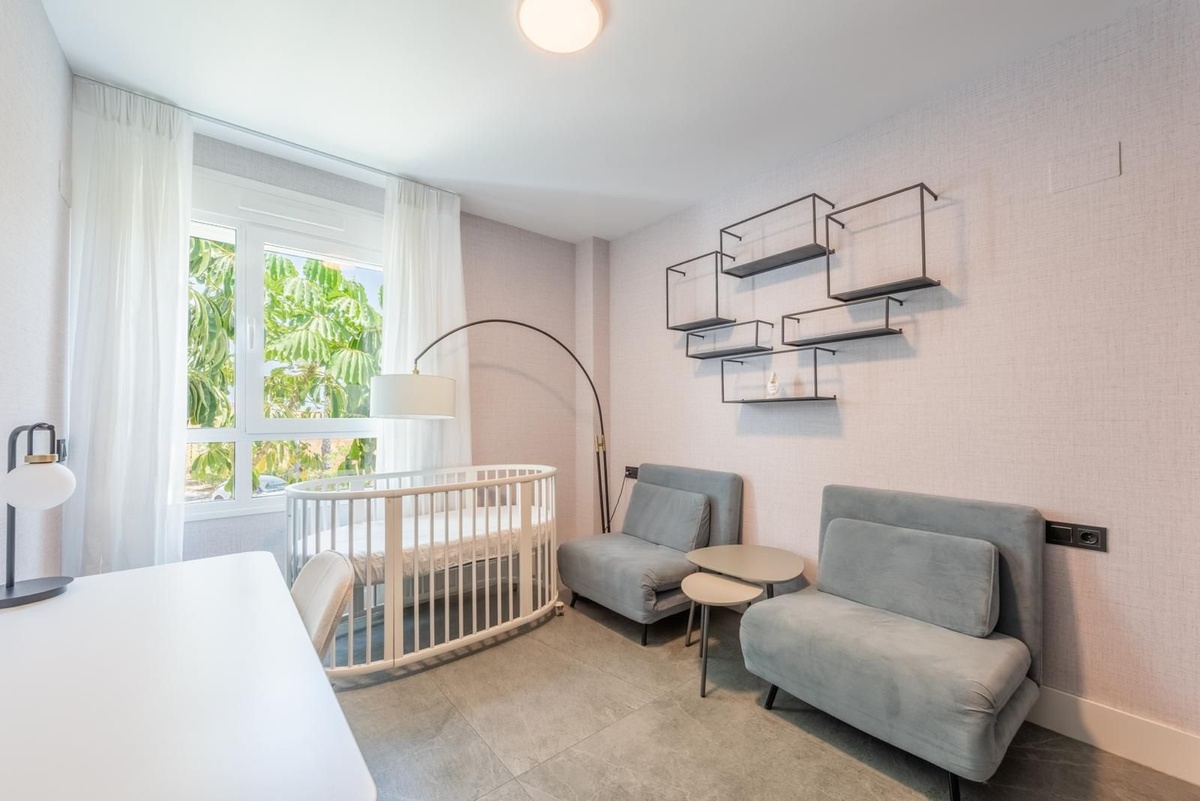 Пентхаус - дуплекс, построенный в 2018 году, выделяется своим элегантным современным стилем, имеет в общей сложности три спальни (две из них на первом этаже), Две ванные комнаты, гостиную с открытой кухней и террасой на основном этаже и большую террасу на верхний этаж с джакузи, сауной и т. д. С террасы открывается прекрасный вид на море, поле для гольфа, озеро и горы.