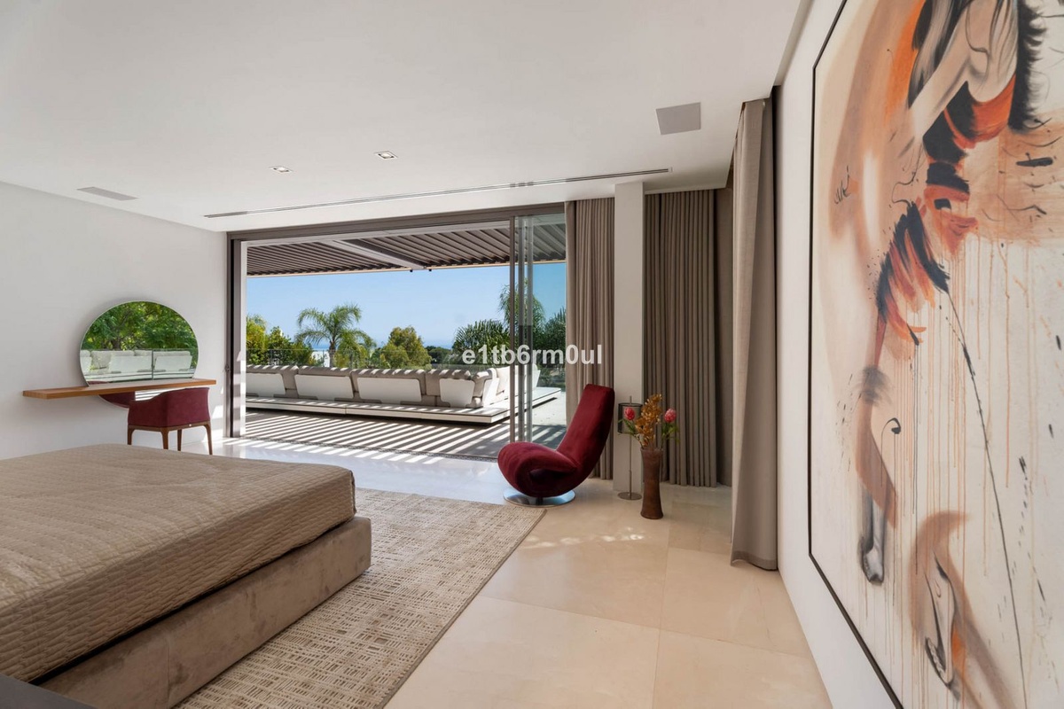 Эта новая дизайнерская вилла, расположенная в престижном жилом анклаве Ла Кинта в Бенахависе, является вершиной современной средиземноморской архитектуры. Захватывающий панорамный вид на море и поле для гольфа, этот изысканный дом отражает суть роскошного образа жизни в Марбелье.