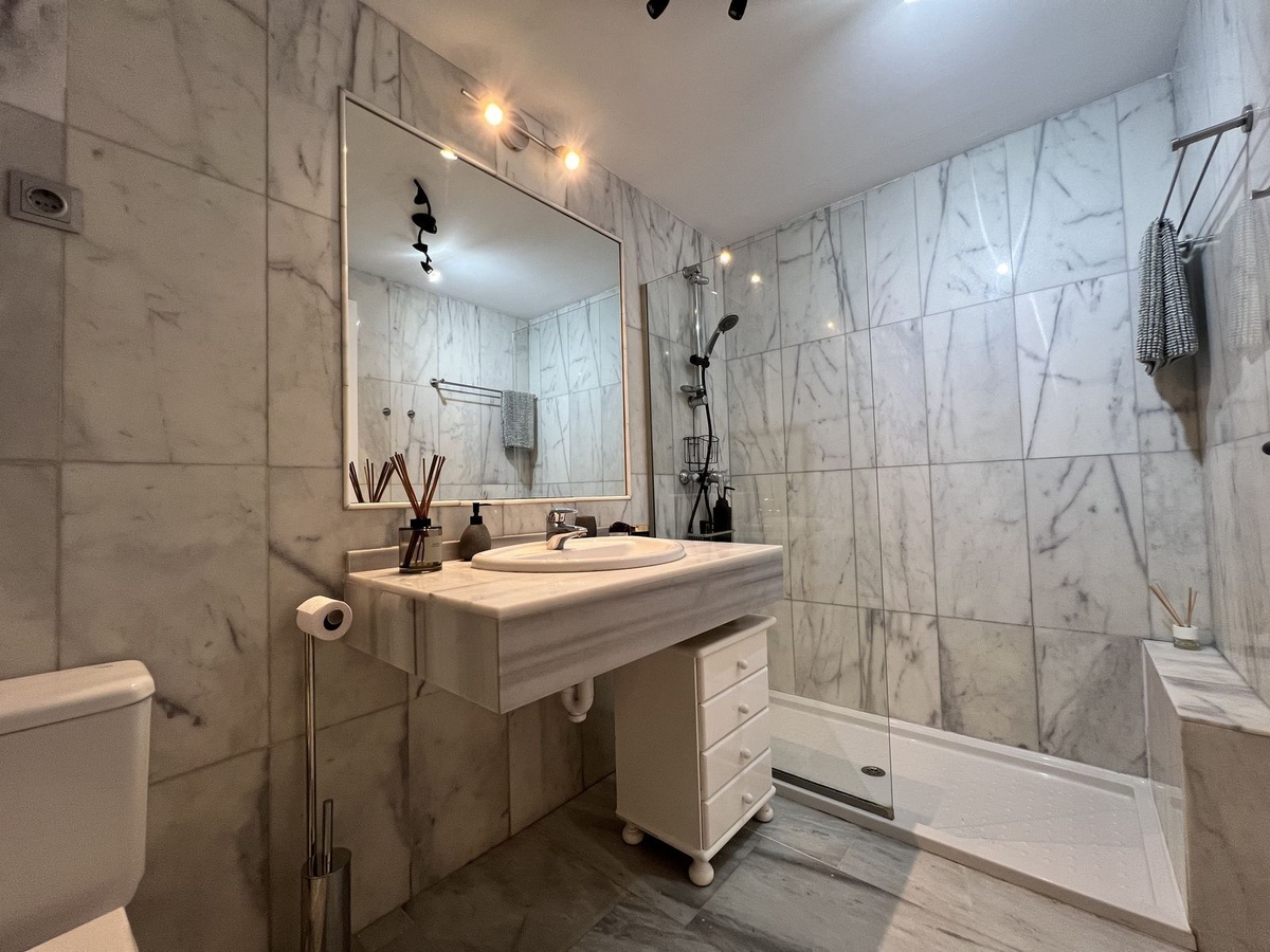 Содержит просторную спальню, ванную комнату, гостиную с камином, прекрасная терраса на западе, полностью оборудованную кухню с ее доступом к террасе!