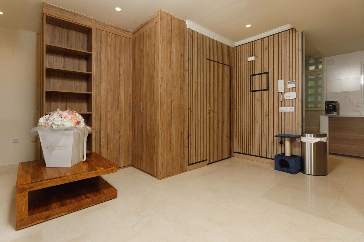Жильцы пользуются широким спектром общих удобств, включая ухоженный бассейн, сад и гараж, всё это находится в закрытом комплексе с круглосуточной охраной, видеодомофоном и камерами наблюдения. В квартире установлена современная сигнализация, усиленная дверь и кладовая, что подчёркивает заботу о комфорте и спокойствии. В здании также есть лифт, что обеспечивает удобный доступ для всех.