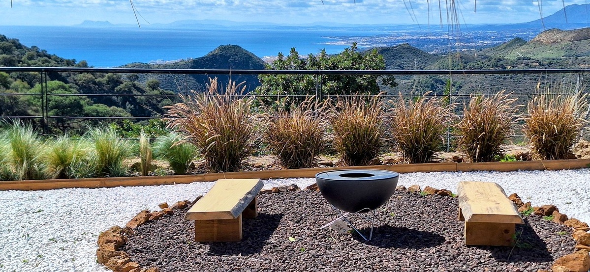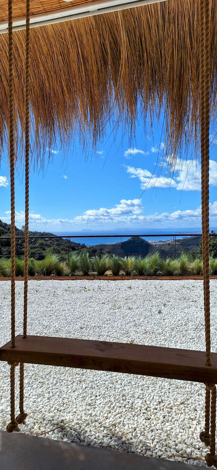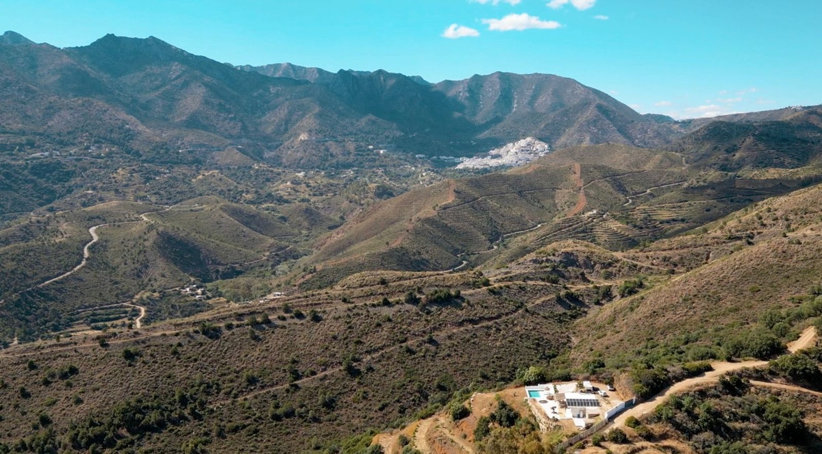 Can you imagine waking up every morning surrounded by pure nature, in a private estate with panoramic views stretching across the Mediterranean, Gibraltar, and Africa? This hidden gem in the Altos de Marbella makes every day feel like a holiday.Set on a fully fenced 7,000 m2 plot, this beautifully renovated countryside home is self-sufficient and environmentally conscious. Enjoy silence, privacy, and the natural beauty of a setting where only birdsong breaks the peace.The house offers two bedrooms — one with a dreamy walk-in wardrobe, and the other with an en-suite bathroom. The spacious, warm living room opens up to postcard-worthy views, while the fireplace makes every evening feel cozy and inviting. The open-plan kitchen, finished to a high standard and featuring a large wooden table for six, is ready for your best moments.Fully equipped with individual air conditioning units in every room, a solar panel system, its own water well, and a massive 50,000-liter water cistern — everything here has been designed for comfortable, private, and connected living without sacrificing modern comforts.The estate is planted with fruit trees — orange, fig, avocado, vines, and more — and is accessed via a well-maintained dirt road, just 10 minutes from the beach and 15 minutes from Marbella’s town center.Whether from your pergola-covered terrace or by the fireplace, every corner of this home offers a window into peace, beauty, and natural luxury.Only 10 minutes from Marbella’s iconic arch, Los Monteros beach, Playa del Cable, Costa del Sol Hospital, and ALDI supermarket.The abbreviated information document is available to you. Expenses: Taxes (ITP or VAT+AJD) + Notarial and registration expenses. AGB