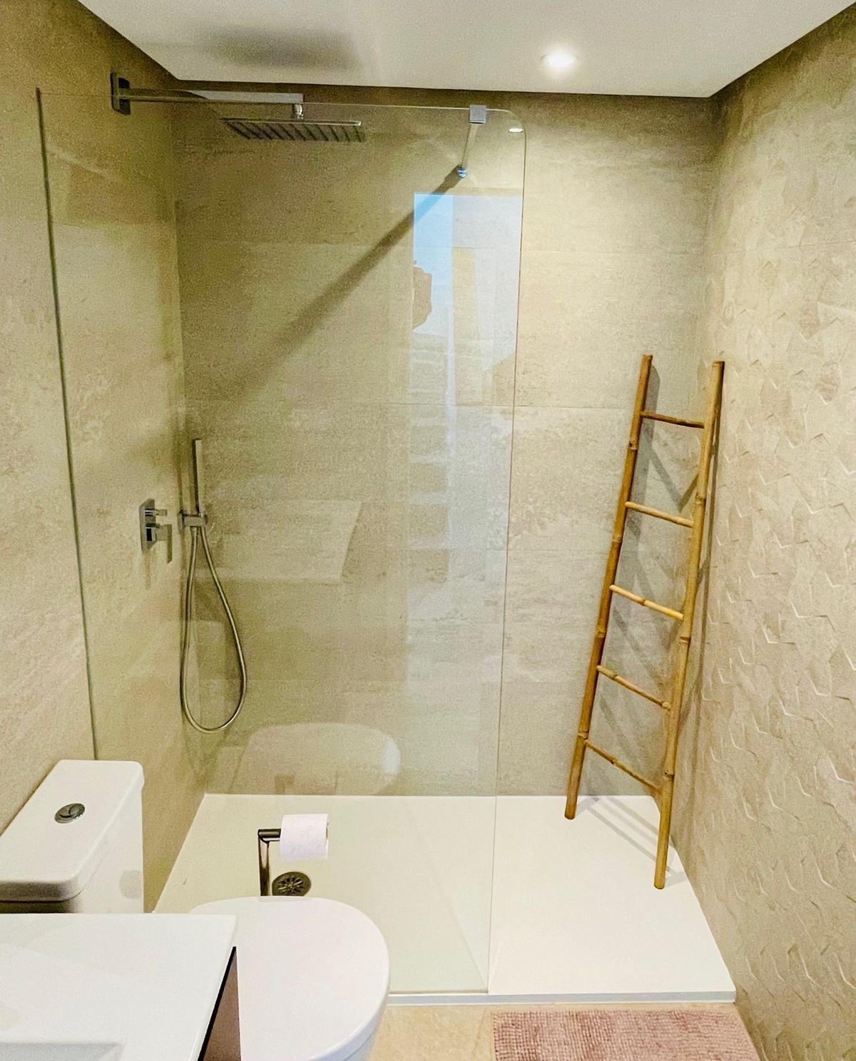 Upstairs, you’ll find three spacious bedrooms and two modern bathrooms. The master bedroom is especially nice, with a dressing area, lots of light, and its own access to the bathroom. The second floor is perfect for families or guests.