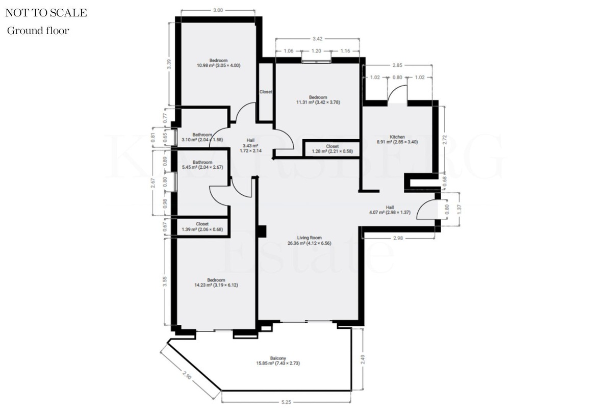 The master bedroom features built-in wardrobes and an en-suite bathroom, while the two additional bedrooms share a modern family bathroom, offering flexibility for family, guests or even a home office.
