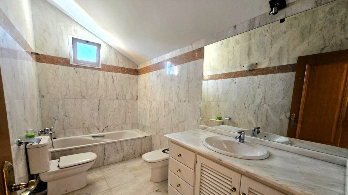 Три большие спальни с двуспальными кроватями со встроенными шкафами.В главной спальне есть собственная терраса и ванная комната, а во второй спальне также есть собственная терраса.Семейная ванная комната обслуживает остальные спальни.