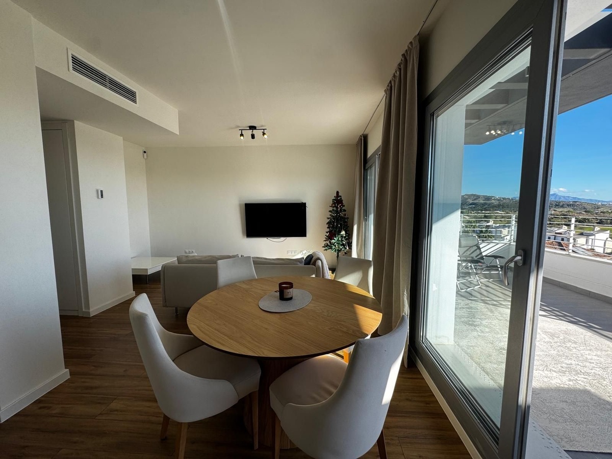 This unique penthouse is located in one of Estepona's most picturesque areas – Valle Romano. This spacious, modern apartment features a large terrace and spectacular views of the Mediterranean Sea, golf courses, and majestic mountains.