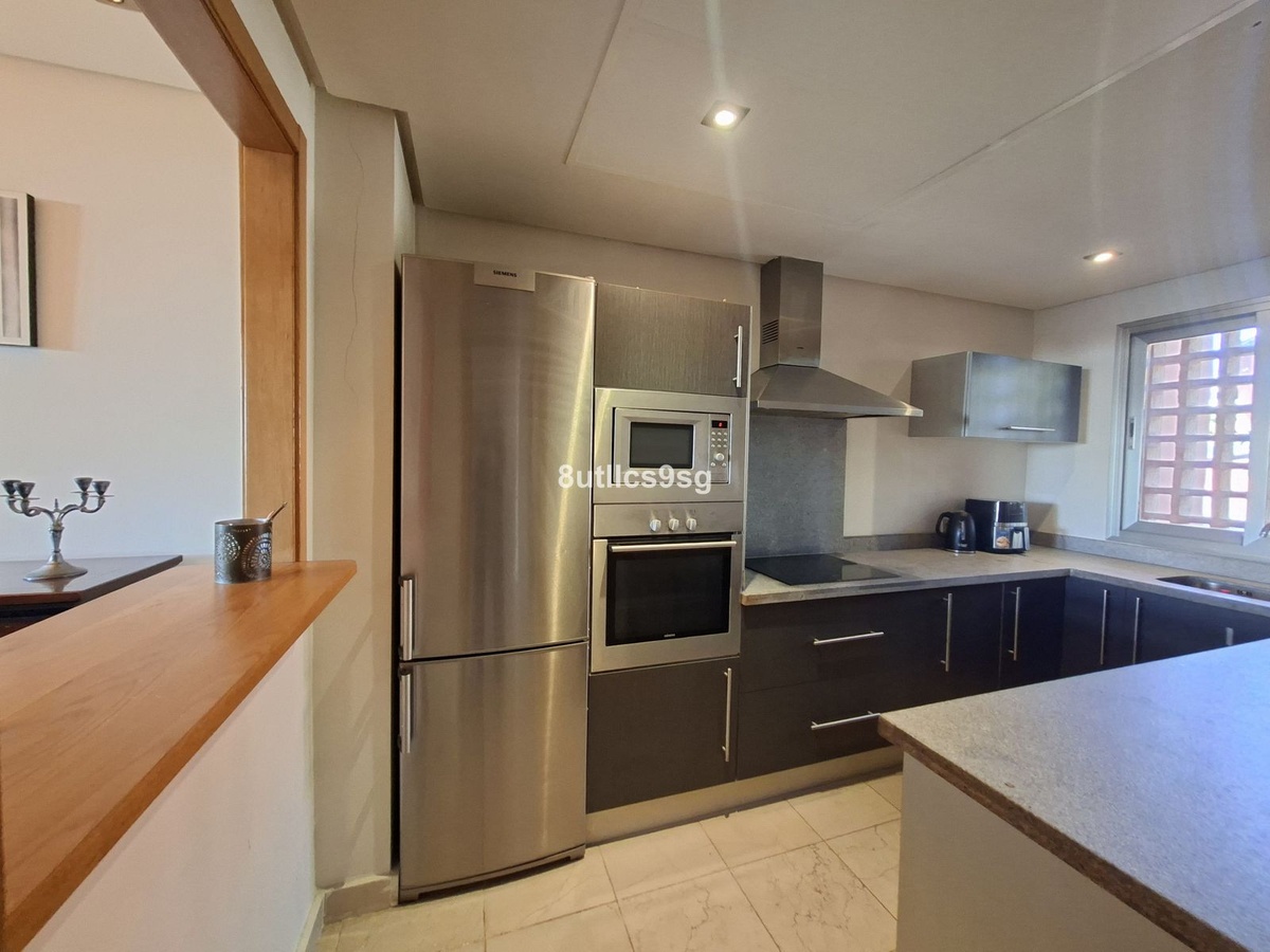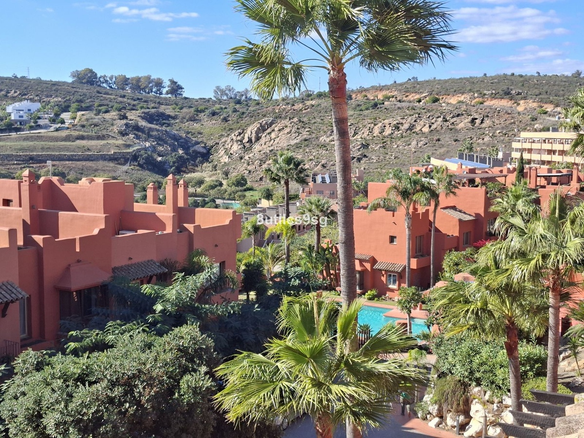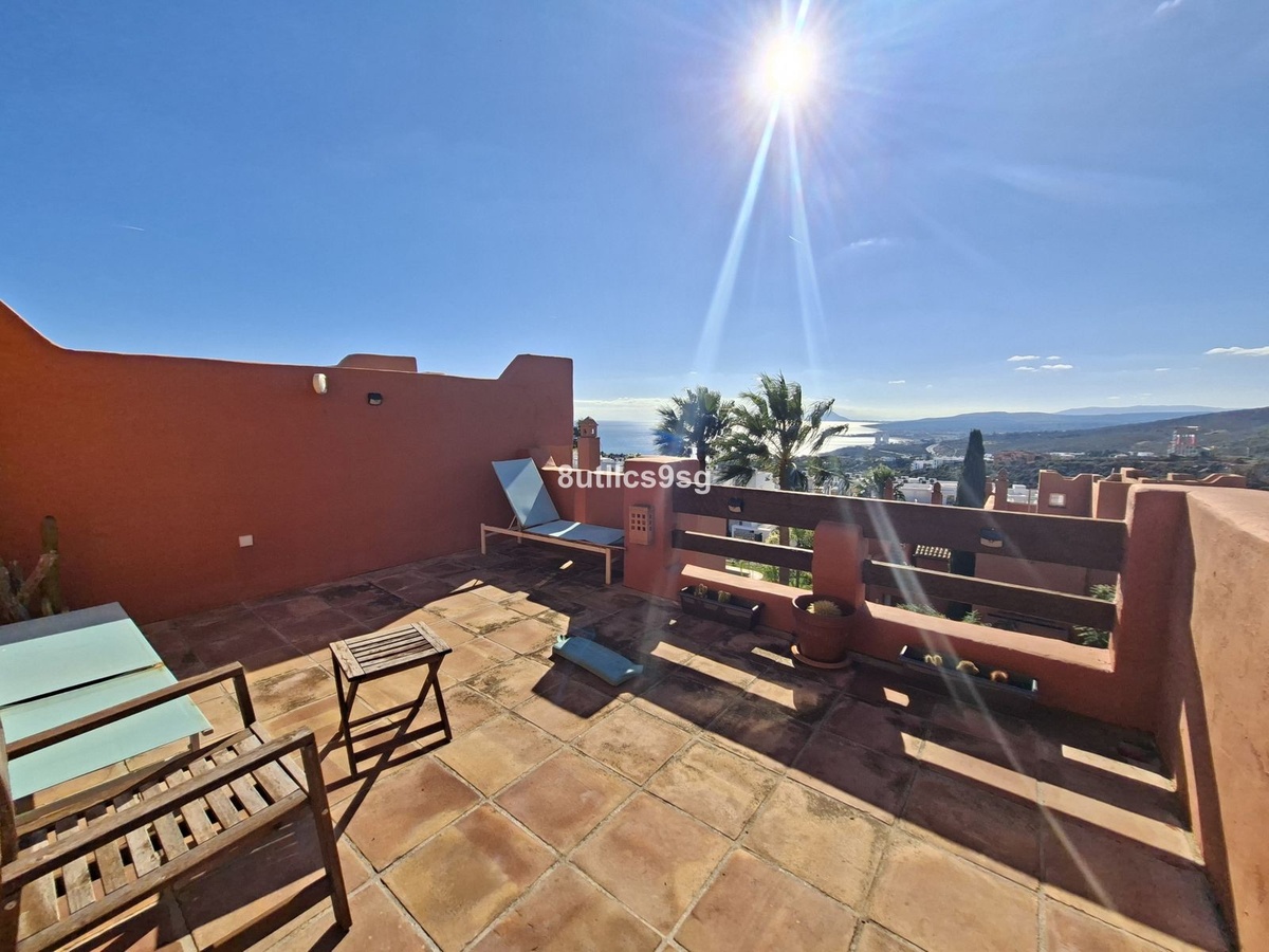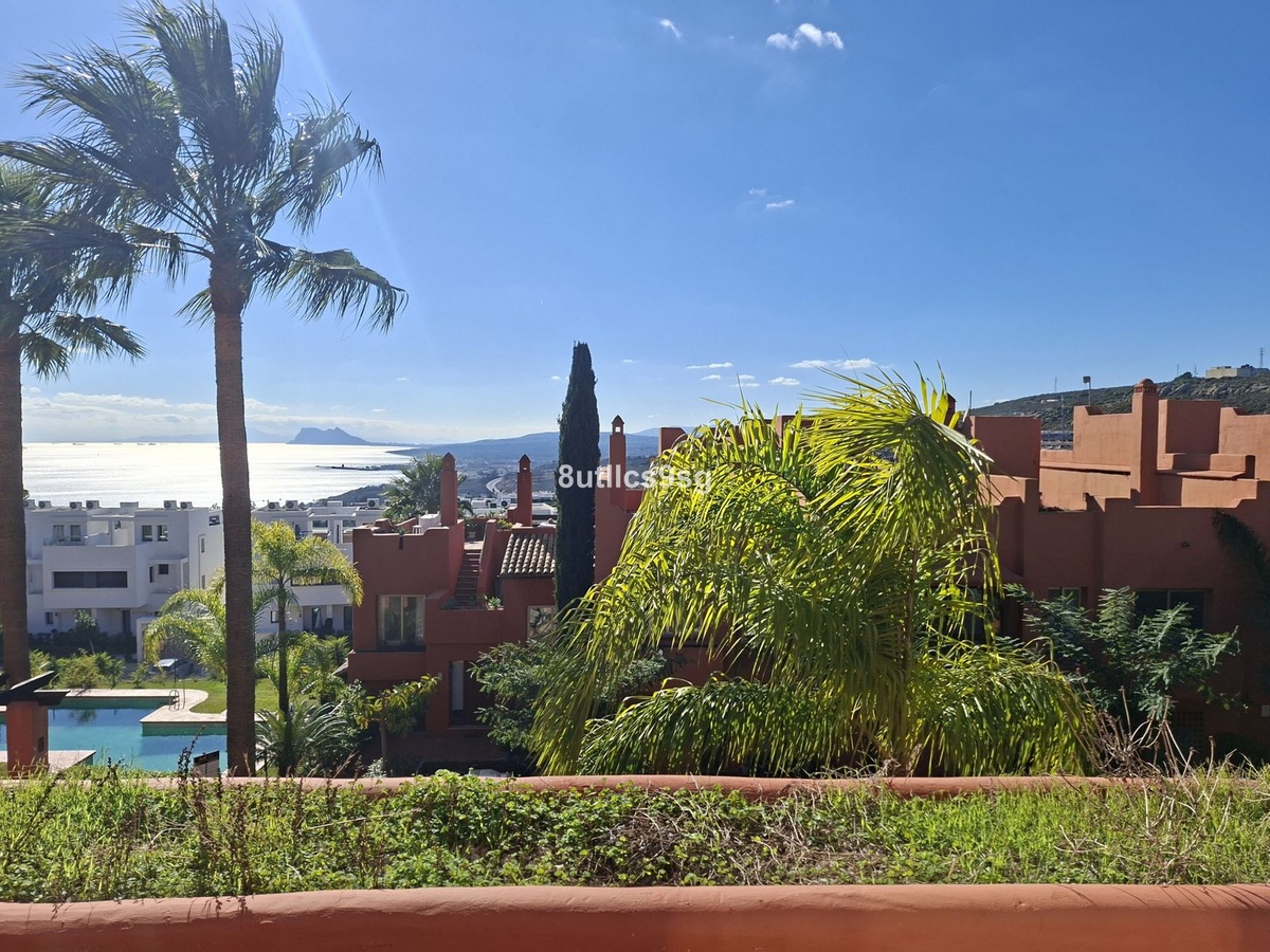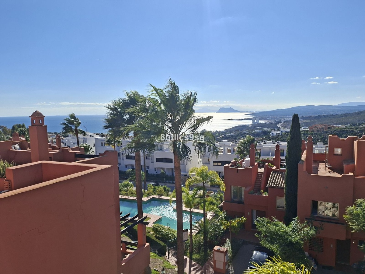 Townhouse in Bahia de Las Rocas, two minutes from Sotogrande, with two bedrooms with two en suite bathrooms (one with Jacuzzi) and a guest toilet. Spacious living room with access to the terrace overlooking the sea, Gibraltar and African coast. This townhouse has three floors and a basement that can be converted into a bedroom, game room, etc. ground floor with living room, fully equipped kitchen and guest bathroom, first floor with two bedrooms and access to a large solarium with stunning views. The property has fitted wardrobes, hot / cold air conditioning and carport. The urbanization is gated and has beautiful gardens and pools for adults and children.