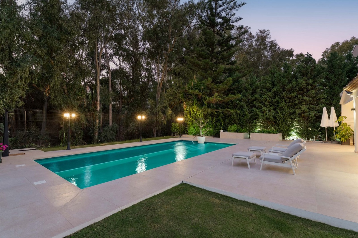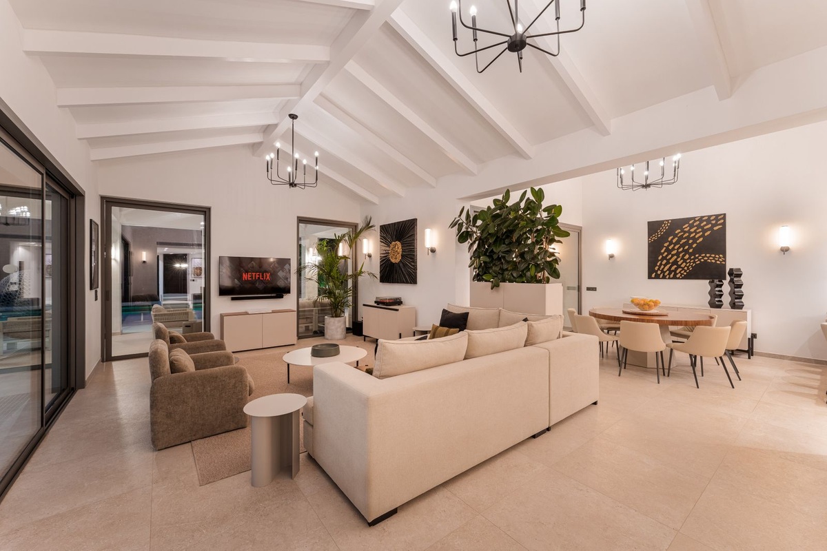 Elegant contemporary five bedroom villa for sale in the highly desirable neighbourhood of La Cerquilla, Nueva Andalucía. Renovated in 2025, this villa offers modern luxury living, functional design and elegant interior detailing.