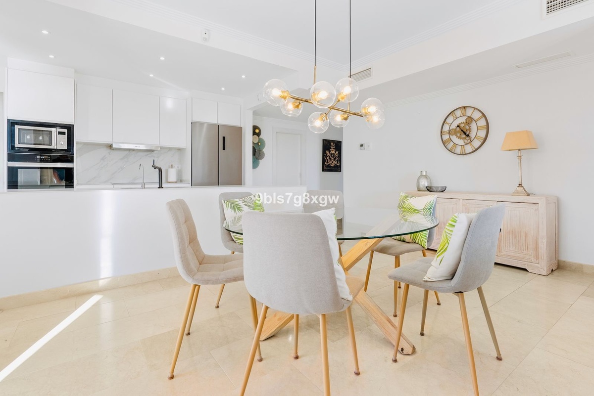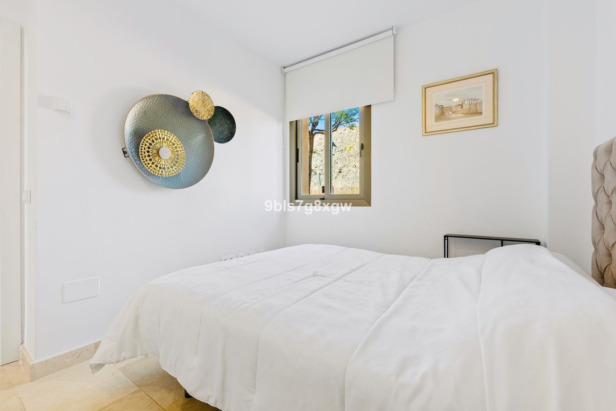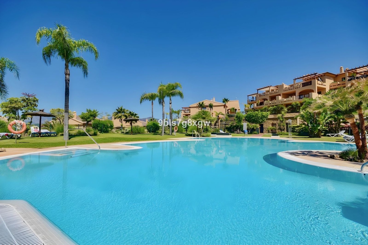 Superb and spacious 127m² ground-floor apartment, ideally located at the highest point of the development. It features two terraces totaling 78m², partially covered (perfect for year-round enjoyment), with direct access to the 140m² communal garden and offering beautiful views of the sea and Gibraltar. Being a corner unit, it enjoys optimal natural light thanks to its three façades and its south/southwest orientation.