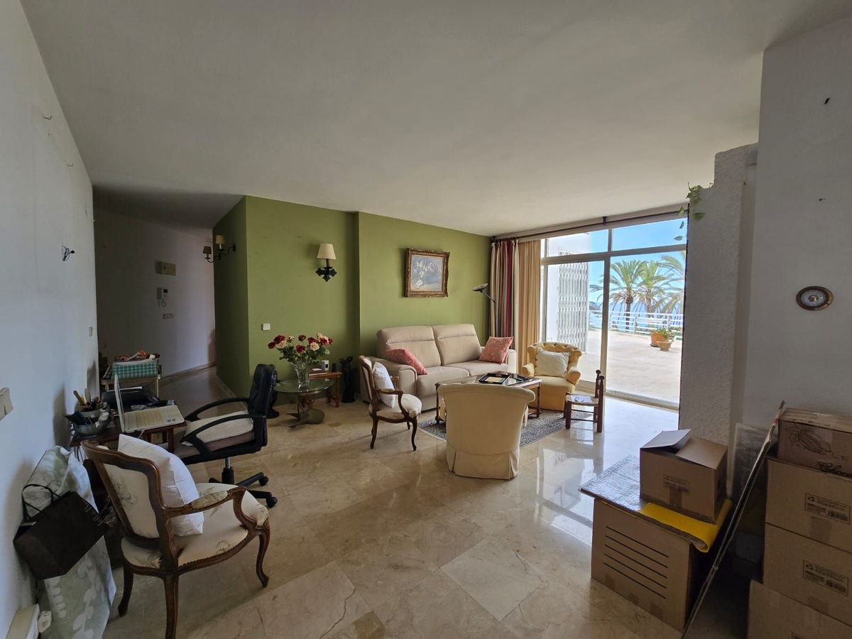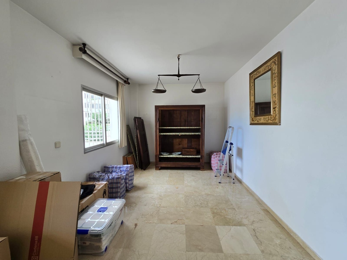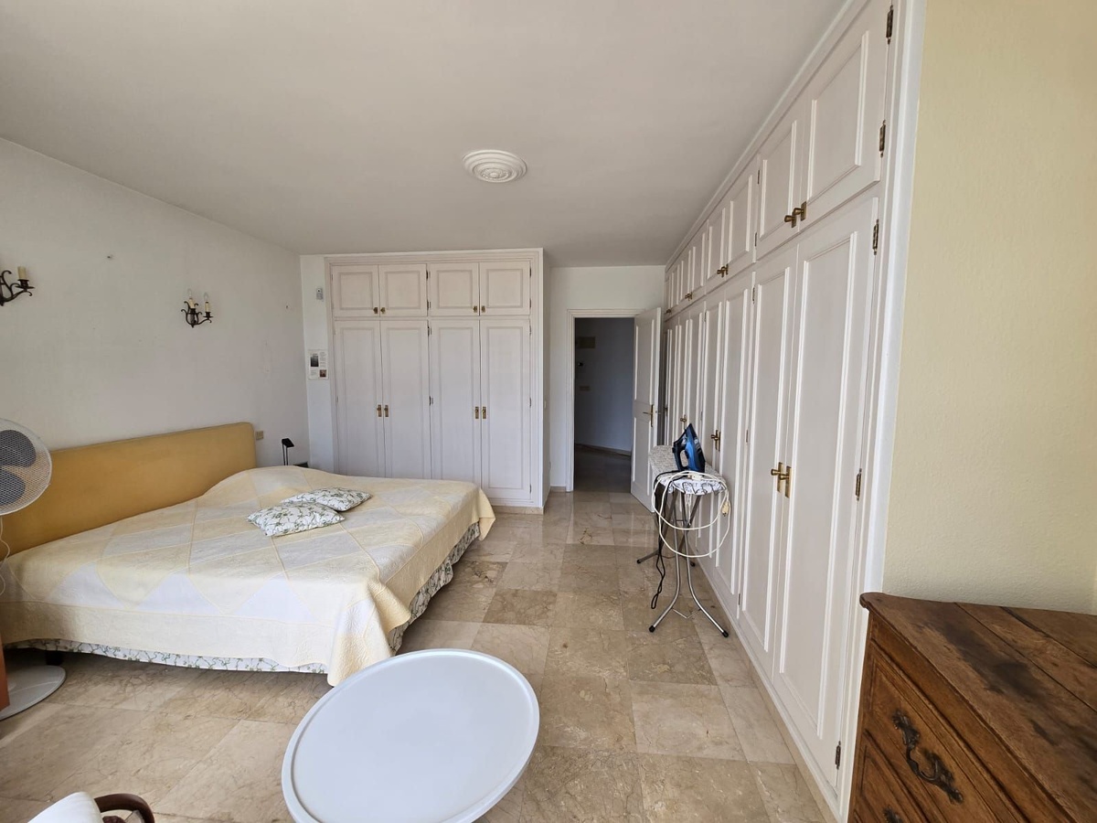 It is part of two apartments joined together and currently consists of a spacious bedroom with plenty of cupboards, a living-dining room, a fitted kitchen and a full bathroom. It offers many possibilities and could be converted into two bedrooms. It has marble flooring and direct access to the terrace from the bedroom and living room.