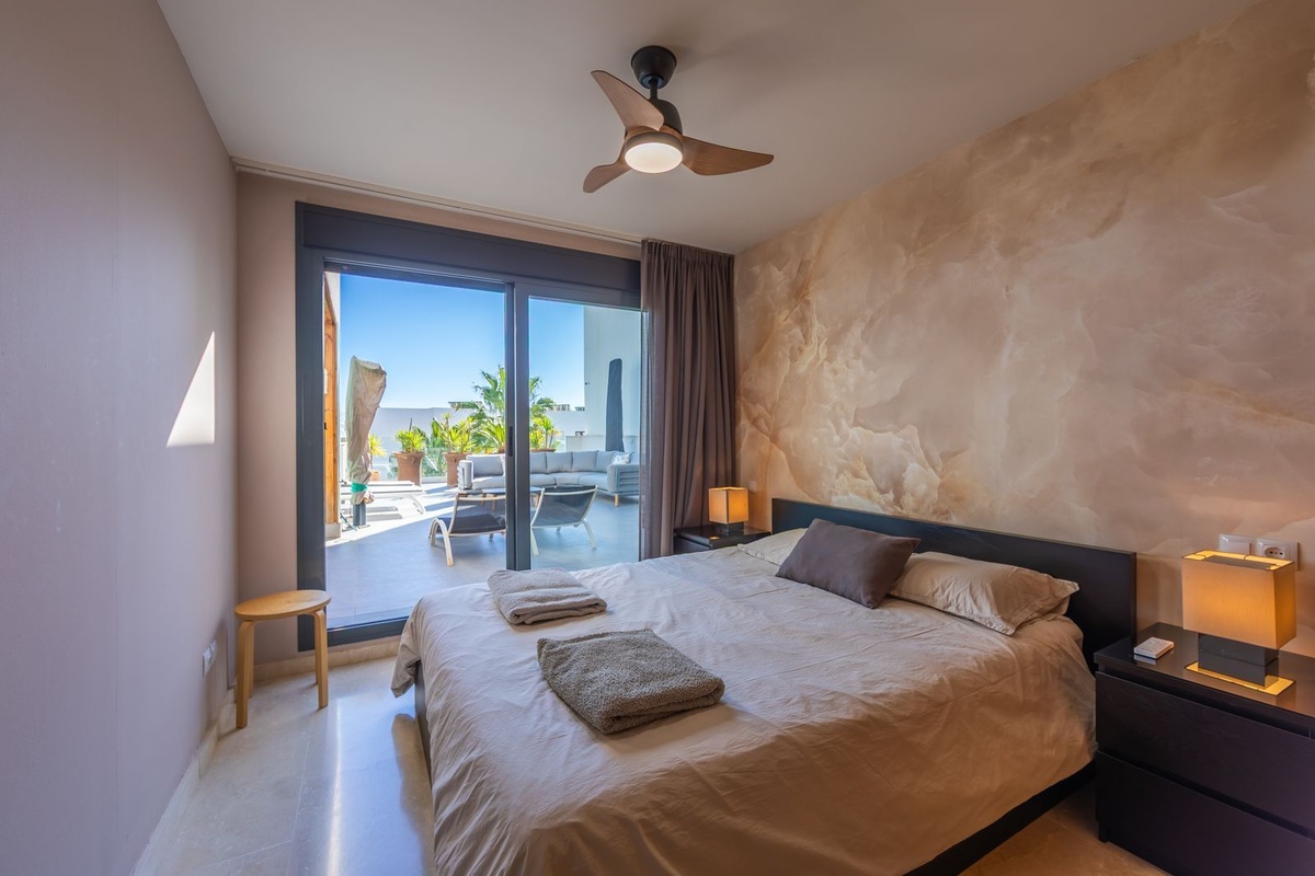 Magnificent penthouse with a large terrace and southeast-facing solarium, enjoying wonderful views of the sea and the golf course. Located in a beautiful residential complex, it sits in one of the most sought-after areas, surrounded by prestigious golf courses, in a peaceful setting away from noise. Just a 5-minute drive away, you’ll find the attractive beaches of Casares Costa, the charming village of Sabinillas, and the lively Puerto de la Duquesa, where you can enjoy all kinds of shops, restaurants, and leisure options.The property features an elevator from the garage and a communal swimming pool. It also includes an underground parking space and a storage room. An excellent opportunity not to be missed.