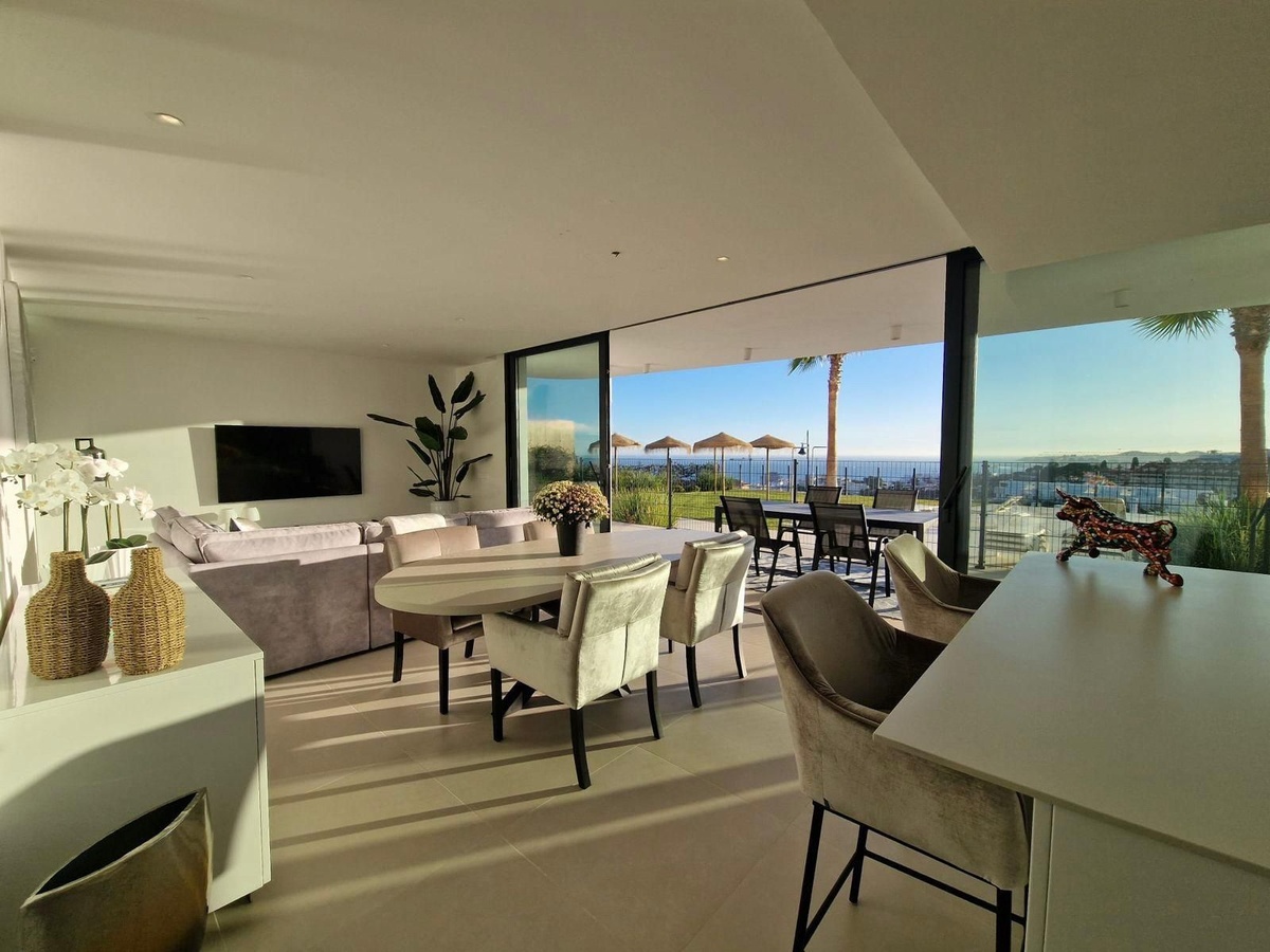 We are delighted to present this newly built ground-floor apartment, completion 2025, with 116.86 m² of living space, featuring three bedrooms and two bathrooms. The apartment is fully furnished with high-quality, luxury furniture and finishes. The spacious southwest-facing terrace of 80.84 m² offers breathtaking panoramic views from Marbella to Gibraltar.