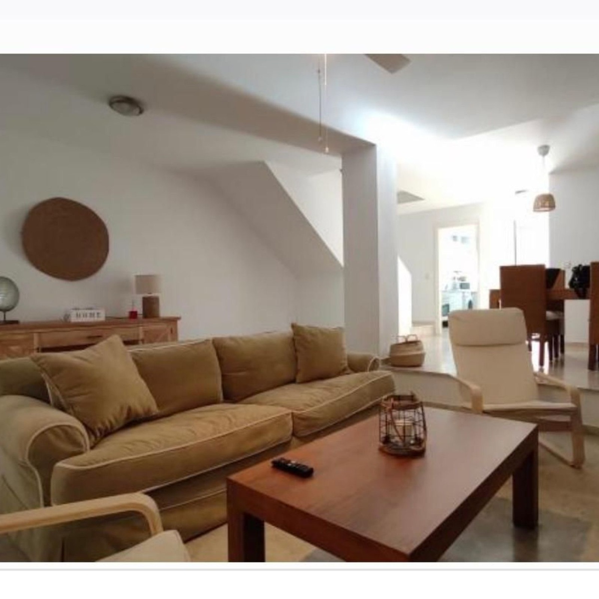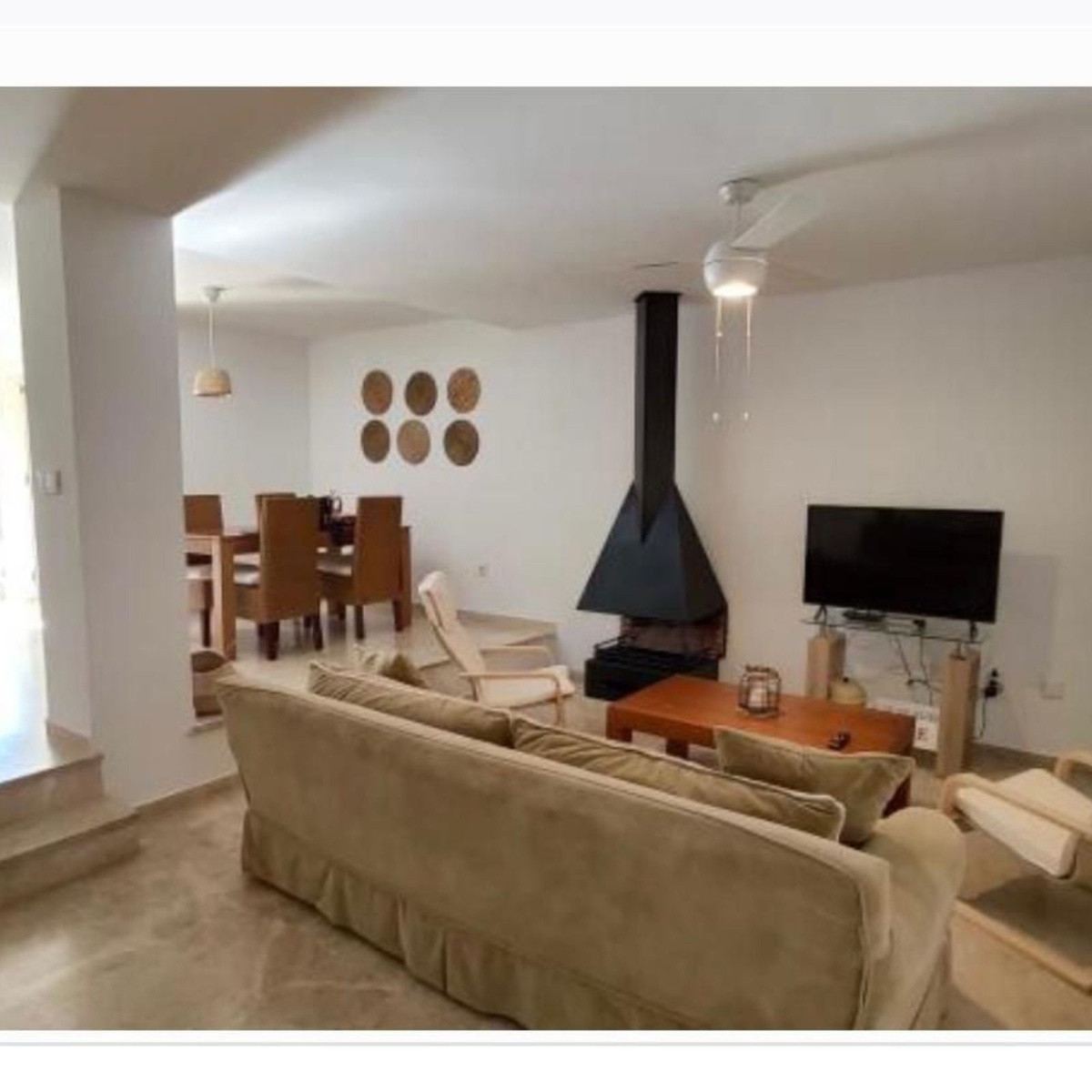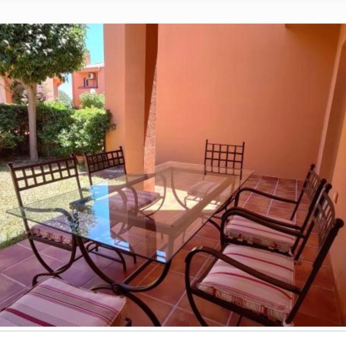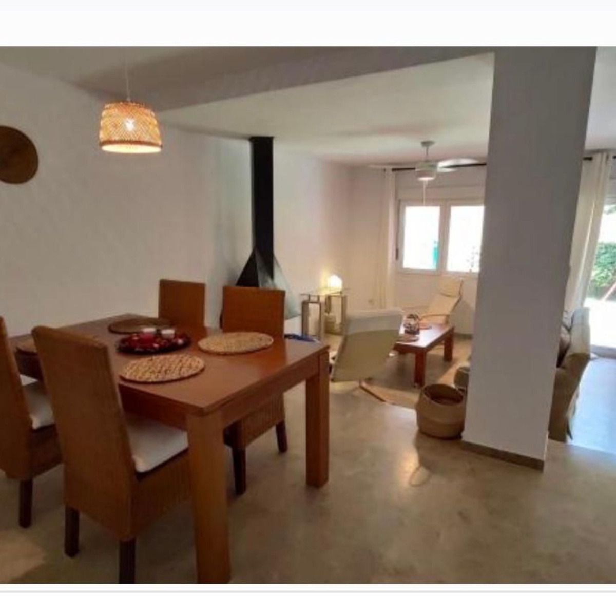 Distributed over two floors, the home features three spacious bedrooms and three full bathrooms, a bright living and dining area with direct access to a private terrace and garden—ideal for outdoor dining, relaxing, or enjoying the sunset. The fully equipped kitchen comes with everything needed for everyday living, and the property is rented fully furnished, ready to move in.